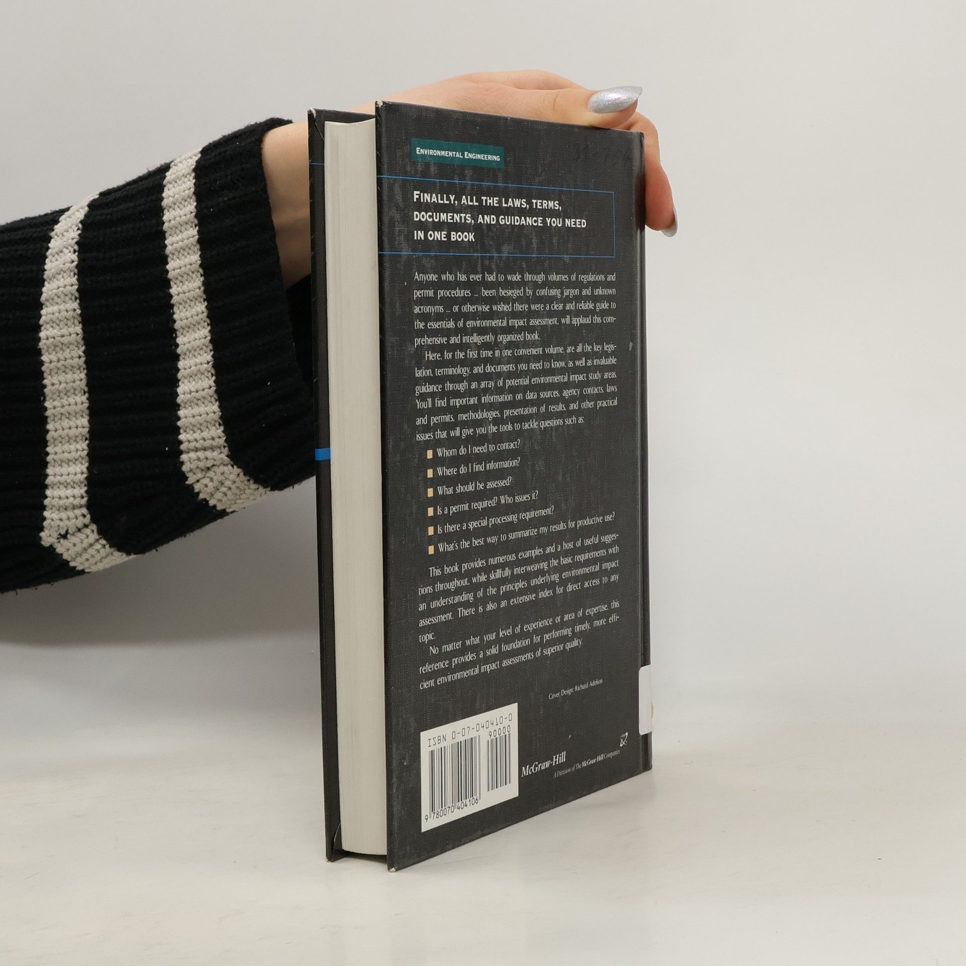 Publisher's Products purchased from Third Party sellers are not guaranteed by the publisher for quality, authenticity, or access to any online entitlements included with the product.All the laws, terms, documents, and guidance on environmental impact assessment you need -- in one book! Anyone who has ever had to wade through volumes of regulations and permit procedures. . .been besieged by confusing jargon and unknown acronyms. . .or otherwise wished there were a clear and reliable guide to the essentials of environmental impact assessment, will applaud this comprehensive and intelligently organized book. Here, for the first time in one convenient volume, are all the key legislation, terminology, and documents you need to know, as well as invaluable guidance through an array of potential environmental impact study areas. You'll find important information on data sources, agency contacts, laws and permits, methodologies, presentation of results, and other practical issues that will give you the tools to tackle questions such Whom do I need to contact? Where do I find information? What should be assessed? Is a permit required? Who issues it? Is there a special processing requirement? What's the best way to summarize my results for productive use? This book provides numerous examples and a host of useful suggestions throughout, while skillfully interweaving the basic requirements with an understanding of the principles underlying environmental impact assessment. There is also an extensive index for direct access to any topic.