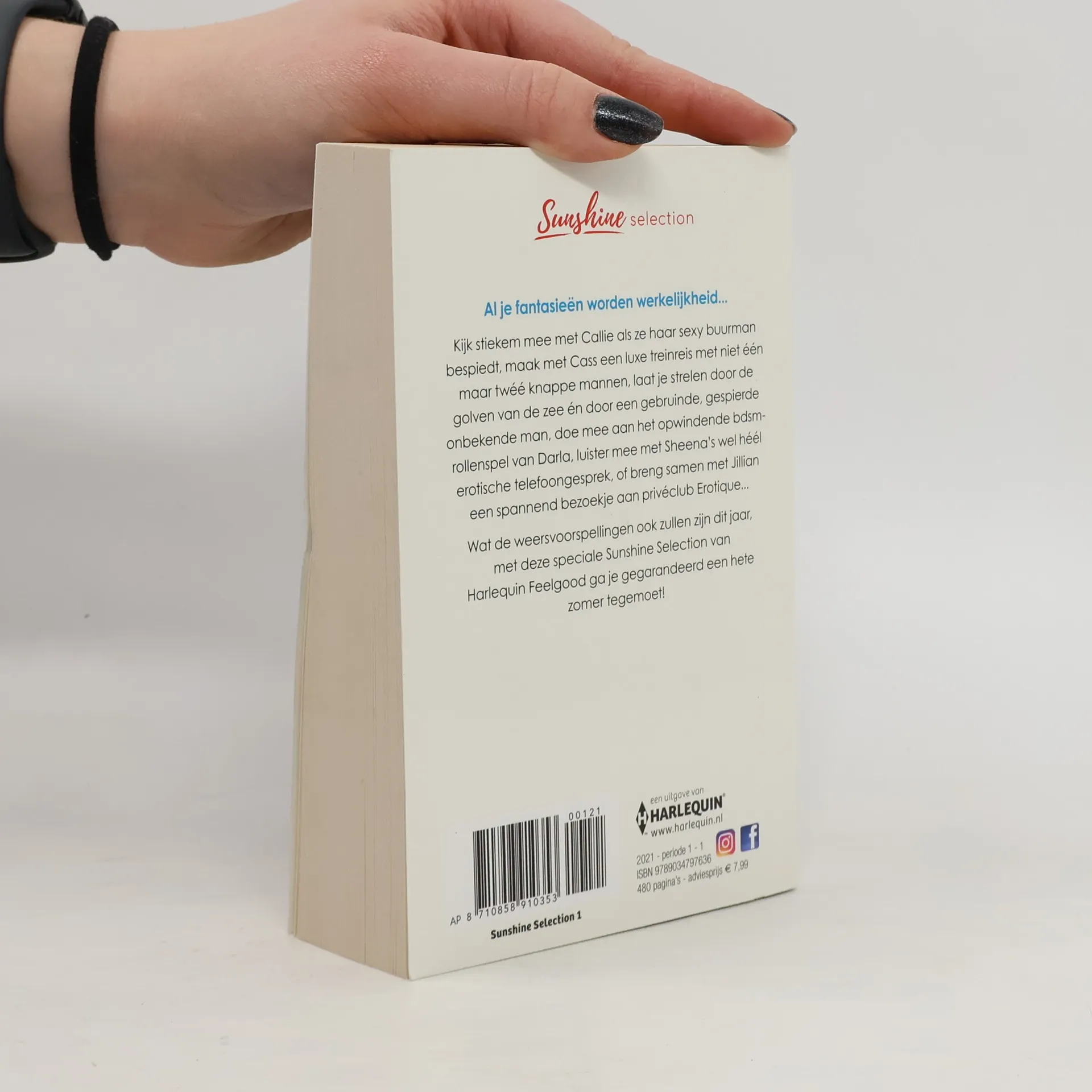 Al je fantasieën worden werkelijkheid... Kijk stiekem mee met Callie als ze haar sexy buurman bespiedt, maak met Cass een luxe treinreis met niet één maar twéé knappe mannen, laat je strelen door de golven van de zee én door een gebruinde, gespierde onbekende man, doe mee aan het opwindende bdsm-rollenspel van Darla, of luister mee met Sheena's wel héél erotische telefoongesprek... Wat de weersvoorspellingen ook zullen zijn dit jaar, met deze speciale Sunshine-editie van HQN Roman ga je gegarandeerd een hete zomer tegemoet... Elisa Adams - Schaamteloze blikkenAnne Calhoun - Op zijn manierAlice Gaines - Strelingen in het duisterEva Cassel - Pikant cadeauEden Bradley - Zee van genotLisa Renee Jones - Meester in hartstochtSusan Lyons - Geheime fantasieënKayla Perrin - Ongeremde begeerteAlison Tyler - Lessen in genotKimberly Kaye Terry - Overgeleverd aan zijn wil Bron: Flaptekst, uitgeversinformatie.