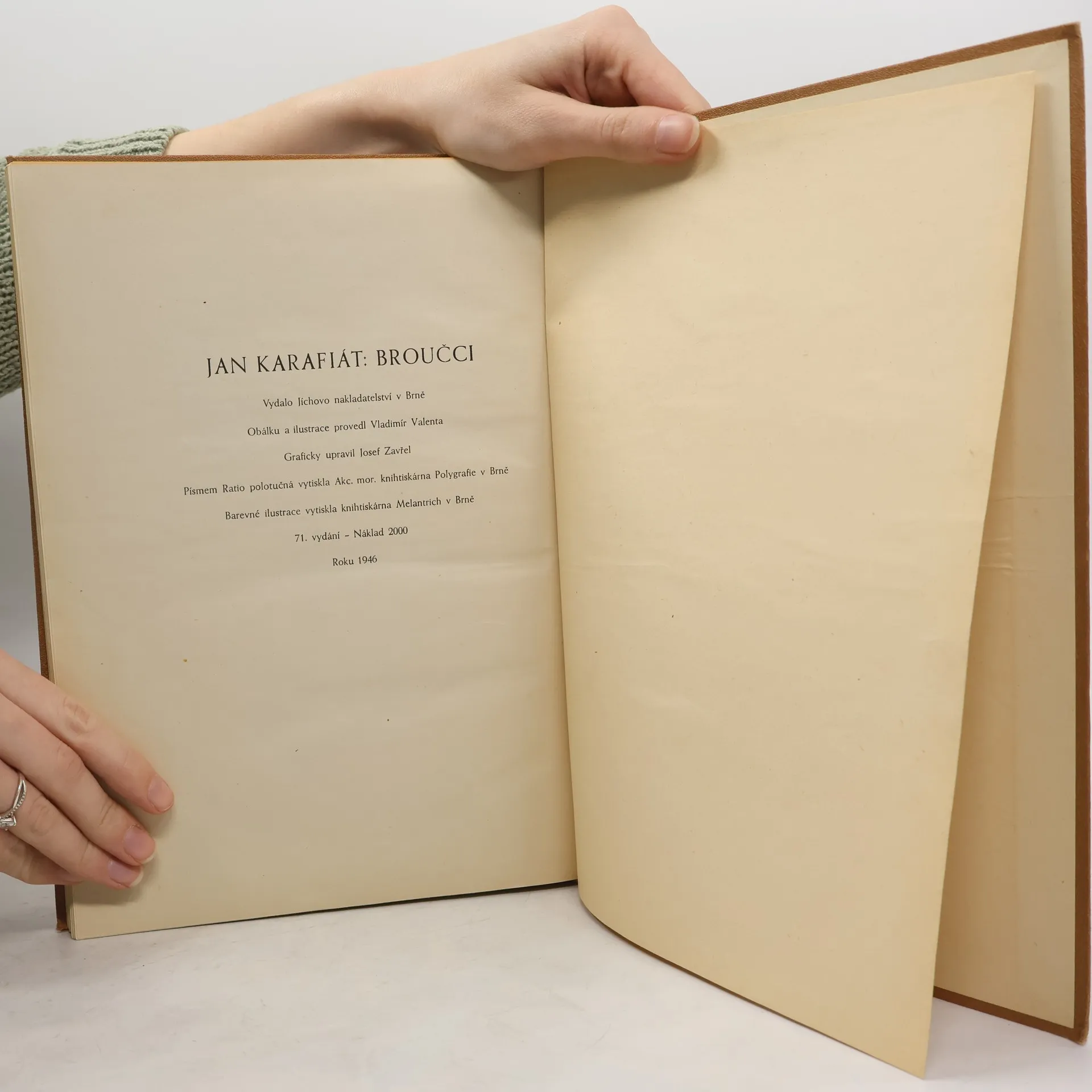Broučky, jediné umělecké literární dílo Jana Karafiáta (1846–1929), potkaly nejednoduché osudy. Roku 1876 anonymně vyšel skromný, neilustrovaný svazek – tehdy s názvem Broučci pro malé i velké děti – a zapadl vcelku bez povšimnutí. Až teprve po sedmnácti letech knížku objevil a zpopularizoval novinář Gustav Jaroš, který ji označil jako „snad nejkrásnější květ naší české literatury dětské“ a jejího autora nazval „českým Andersenem“. Poetická obraznost Broučků, citlivý přírodní lyrismus a ušlechtilý humanismus si dále uchovávají nepomíjející platnost. I jazykově, svým jadrným básnickým slohem šťastně spojujícím hovorovost lidové řeči s vytříbenými biblismy, je dílo Jana Karafiáta pozoruhodné. Čtenářsky i posluchačsky stále přitažlivé zůstávají postavičky malých hrdinů, broučků a berušek, které při všech svých světlých stránkách nejsou zbaveny pravdivých lidských vlastností. Spolehlivým průvodcem Broučků jsou ilustrace národního umělce Jiřího Trnky, které přes časový odstup od svého vzniku na počátku čtyřicátých let nic nepozbyly ze svého půvabu.