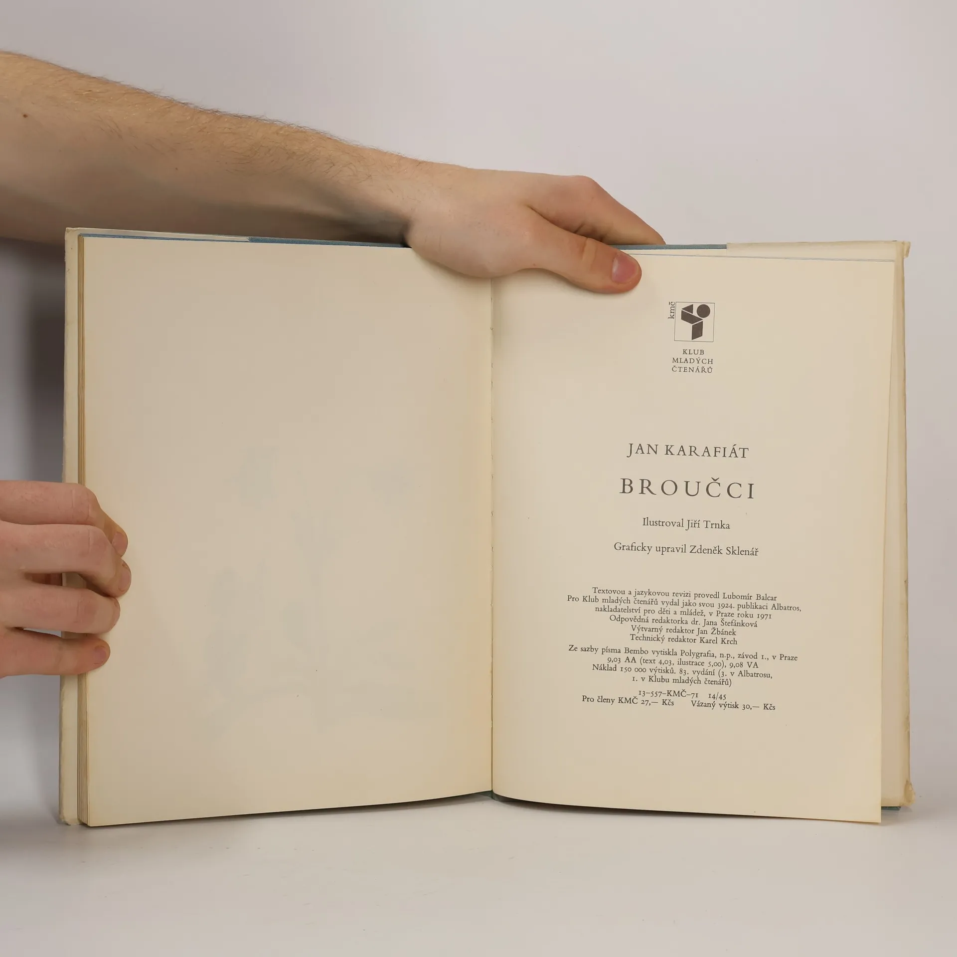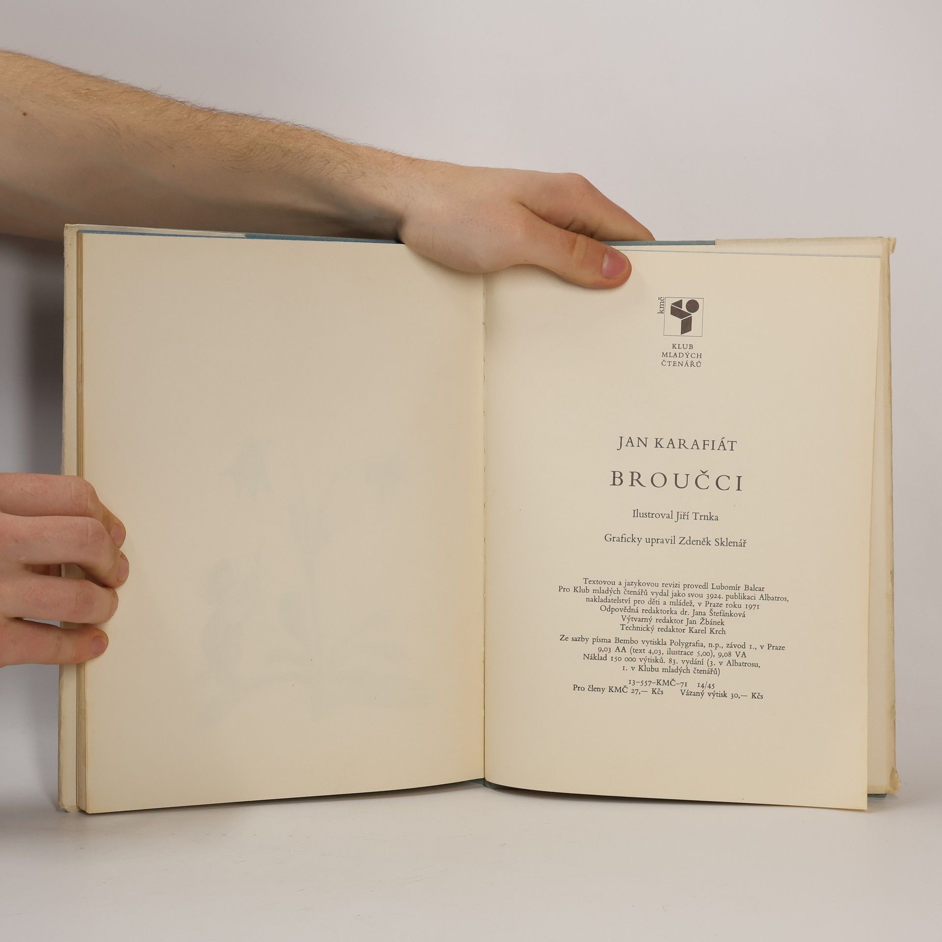 Broučky, jediné umělecké literární dílo Jana Karafiáta (1846–1929), potkaly nejednoduché osudy. Roku 1876 anonymně vyšel skromný, neilustrovaný svazek – tehdy s názvem Broučci pro malé i velké děti – a zapadl vcelku bez povšimnutí. Až teprve po sedmnácti letech knížku objevil a zpopularizoval novinář Gustav Jaroš, který ji označil jako „snad nejkrásnější květ naší české literatury dětské“ a jejího autora nazval „českým Andersenem“. Poetická obraznost Broučků, citlivý přírodní lyrismus a ušlechtilý humanismus si dále uchovávají nepomíjející platnost. I jazykově, svým jadrným básnickým slohem šťastně spojujícím hovorovost lidové řeči s vytříbenými biblismy, je dílo Jana Karafiáta pozoruhodné. Čtenářsky i posluchačsky stále přitažlivé zůstávají postavičky malých hrdinů, broučků a berušek, které při všech svých světlých stránkách nejsou zbaveny pravdivých lidských vlastností. Spolehlivým průvodcem Broučků jsou ilustrace národního umělce Jiřího Trnky, které přes časový odstup od svého vzniku na počátku čtyřicátých let nic nepozbyly ze svého půvabu.