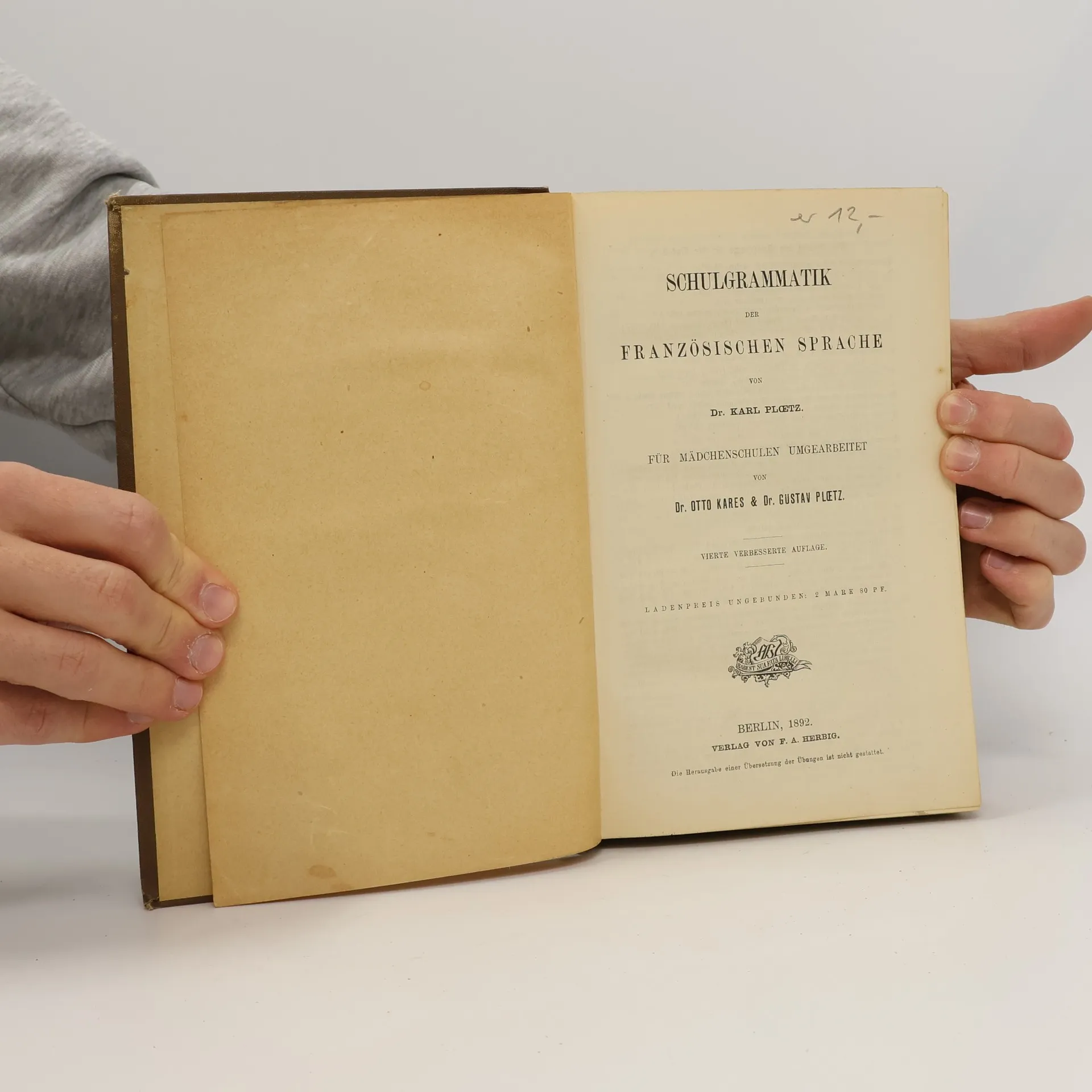 Schulgrammatik der Französischen Sprache, Otto Kares, Gustav Ploetz