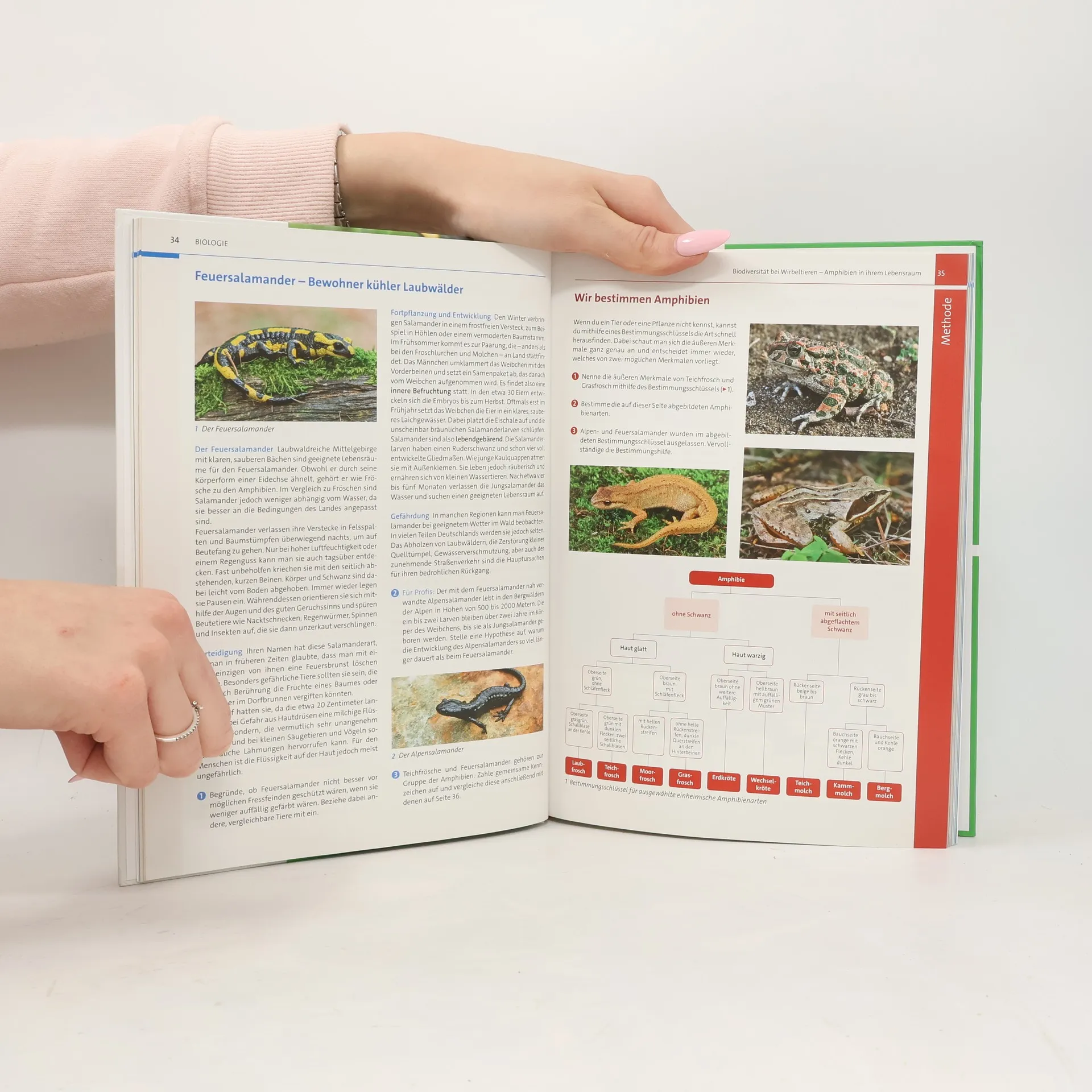 AufbauDie moderne, ansprechende und klare Gestaltung des Schulbuchs mit seinen schülergerechten Texten motiviert die Schüler/-innen zum Lernen und Wiederholen. Die neuen Kapiteleinstiegsseiten wecken durch spannende Fotos zum Thema das Interesse und helfen durch besondere Aufgaben den Vorwissenstand festzustellen. Zahlreiche weitere Aufgaben und Versuche regen zum praktischen und vor allem selbsttätigen Arbeiten an und unterstützen die Entwicklung fachspezifischer und allgemeiner Kompetenzen im Biologieunterricht. Knifflige Profi-Aufgaben erlauben einen differenzierenden Unterricht in heterogenen Klassen. Ausgewählte Lösungen im Anhang bieten den Schülerinnen und Schülern die Möglichkeit, sich selbst zu überprüfen. Kompetenzorientierte Aufgaben am Ende eines jeden Kapitels fassen auf den Alles-klar?-Seiten die gelernten Inhalte und Fähigkeiten zusammen und fördern dabei ein vernetztes Denken. Im Grundwissen am Ende des Buches sind wichtige biologische Fachbegriffe verständlich und glossarartig zum einfachen Nachschlagen und Wiederholen zusammengestellt.