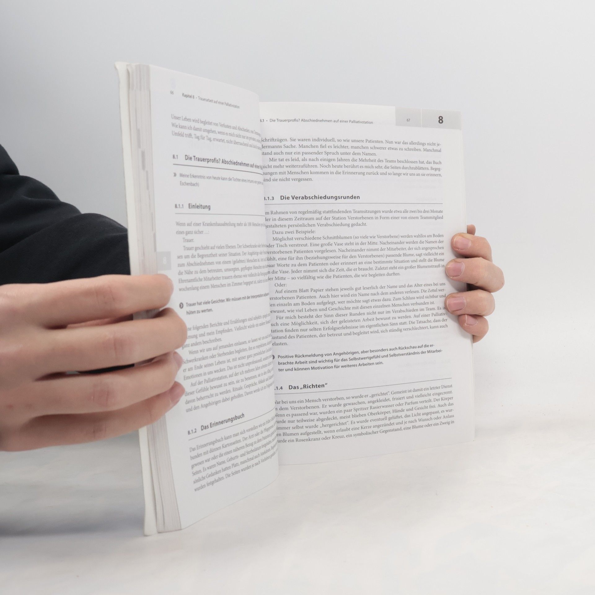 Wenn ein Mensch stirbt, bleiben trauernde Angehörige und Freunde zurück. In geriatrischen oder anderen Pflegeeinrichtungen sind auch Mitbewohner und betreuende Pflegekräfte vom Verlust langjährig nahestehender Menschen betroffen. Trauernde Kinder oder Eltern, die ein Kind, Bruder oder Schwester verloren haben, sind in ganz besonderer Weise mit der überwältigenden, oft auch tabuisierten Emotion konfrontiert, der das Umfeld oft hilflos gegenübersteht. Dieses Buch bietet im einführenden Teil allgemeine Informationen zum Thema Trauer und Trauerarbeit. Im Praxisteil werden viele praxisnahe Beispiele für einen empathischen und lebensnahen Umgang mit der Trauer verschiedener Personengruppen in unterschiedlichen Settings aufgezeigt. Kranken- und Altenpflegekräfte, Sozialarbeiter, Pädagogen, Psychologen, Personen in Kriseninterventionsteams und Seelsorge usw. finden Anregungen, wie sie Angehörige und andere Bezugspersonen eines Verstorbenen aktiv begleiten und in ihrer Trauer empathisch unterstützen können.