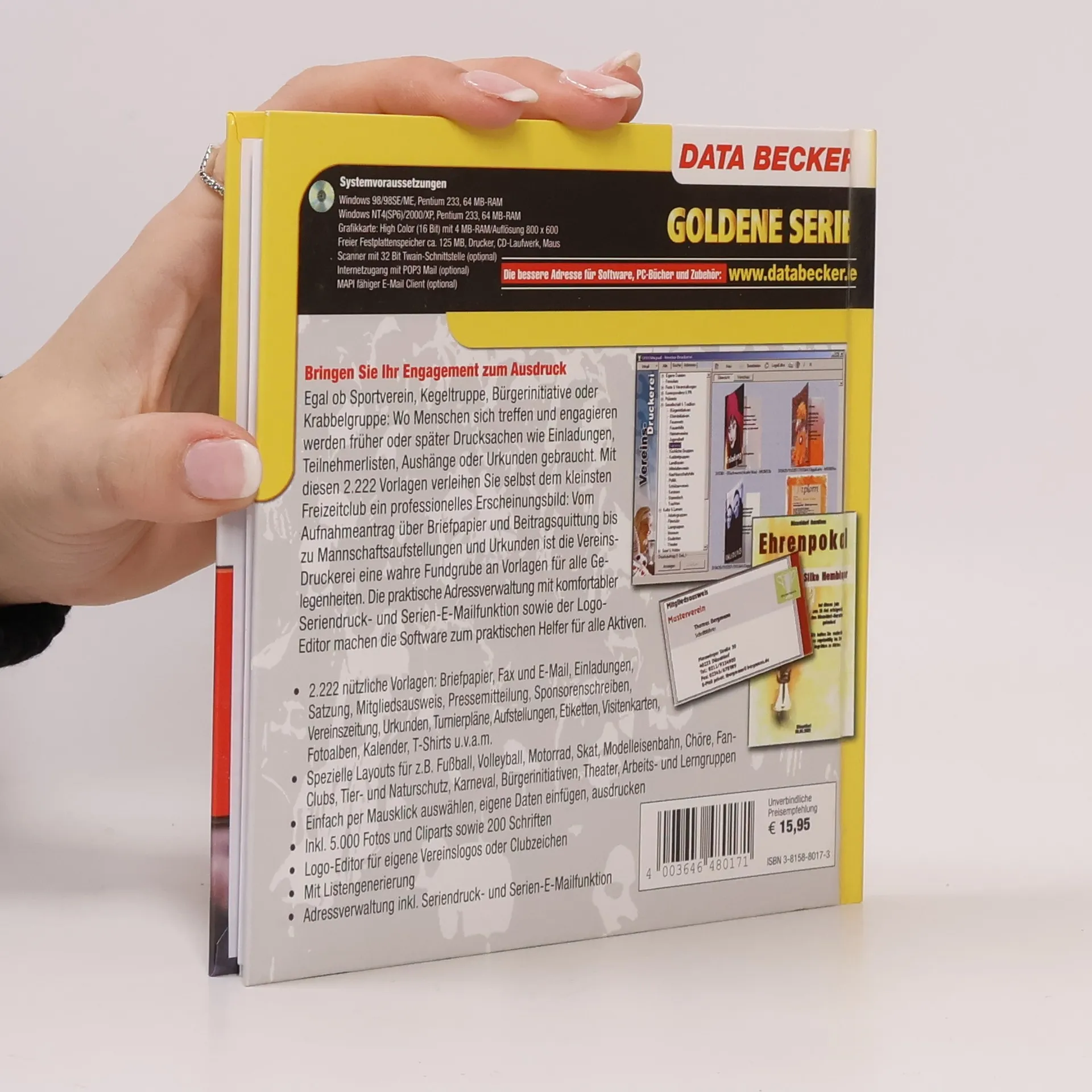 Vereins-Druckerei, 1 CD-ROM 2.222 Vorlagen für Clubs, Gruppen und Initiativen. Für Windows 98/98SE/Me/NT4(SP6)/2000/XP,