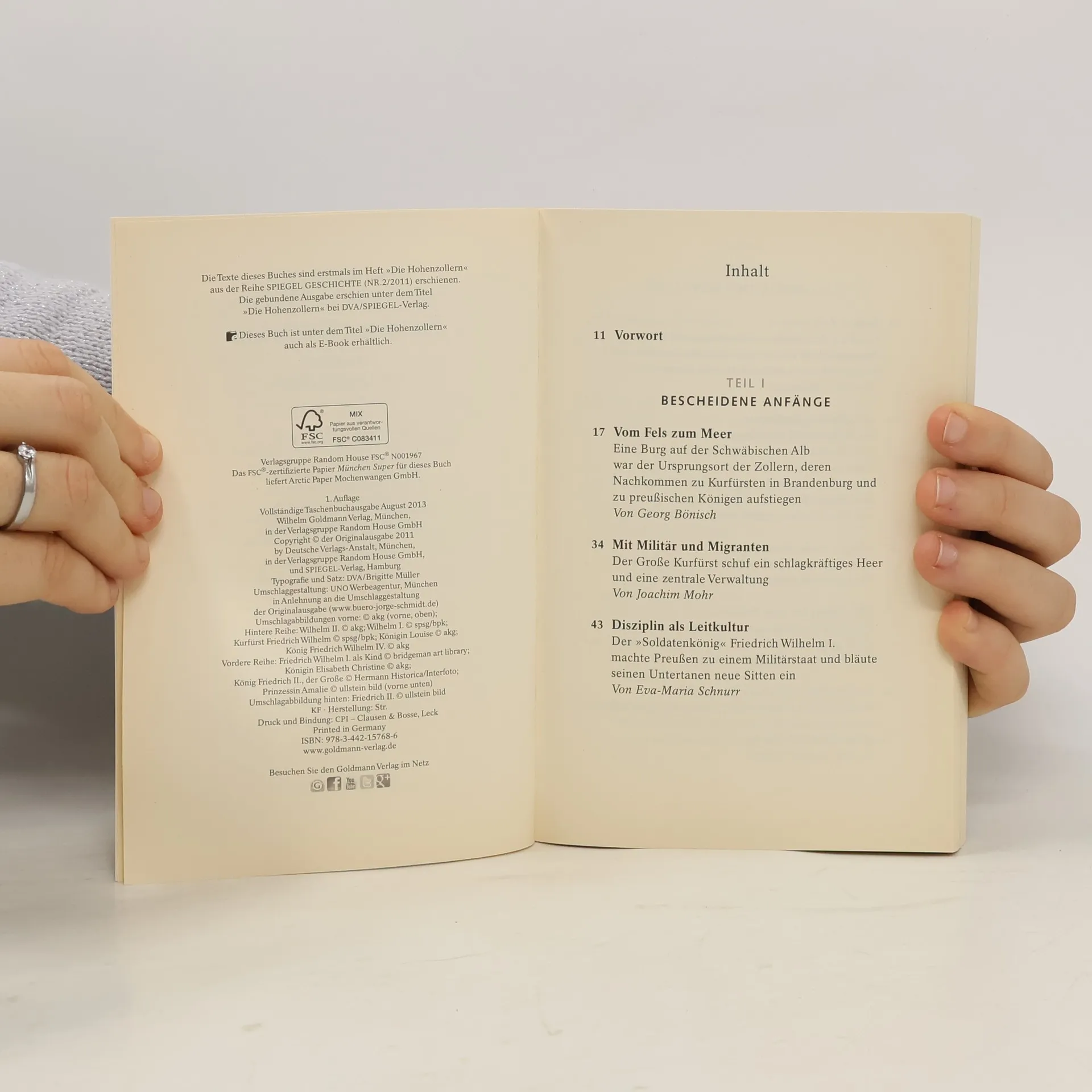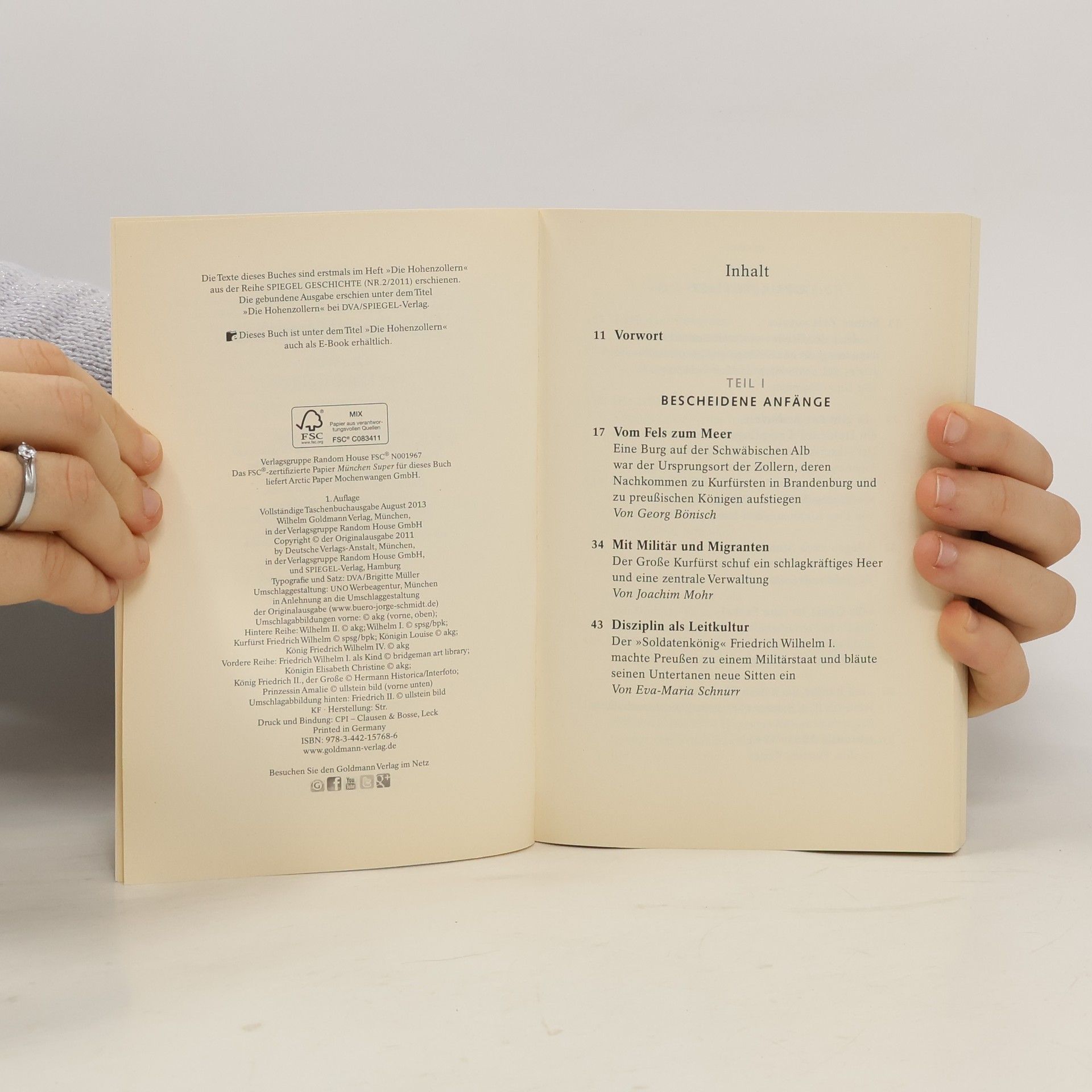 Das wichtigste deutsche Herrscherhaus: die Geschichte der Hohenzollern.Aus den kleinsten Anfängen einer schwäbischen Grafschaft gelang den Hohenzollern der Aufstieg zu brandenburgischen Kurfürsten, preußischen Königen und deutschen Kaisern. Die Herrscher der Hohenzollern verkörperten die Widersprüche ihrer Zeit: Unter ihnen fanden sich Schöngeister und Grobiane, Militärvernarrte und Förderer der Künste, bisweilen in einer Person. Die führenden Köpfe dieser Dynastie und den beispiellosen Aufstieg dieses bedeutenden Herrscherhauses beleuchten SPIEGEL-Autoren und Historiker im vorliegenden Buch. (Als gebundene Ausgabe unter dem Titel "Die Hohenzollern" bei DVA/SPIEGEL-Verlag erschienen.)