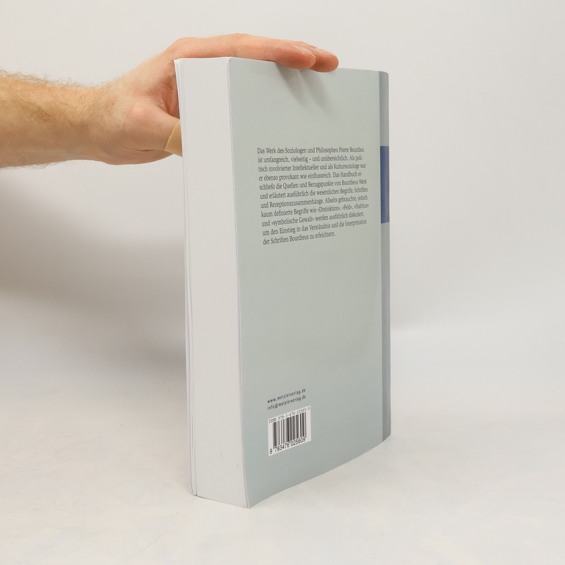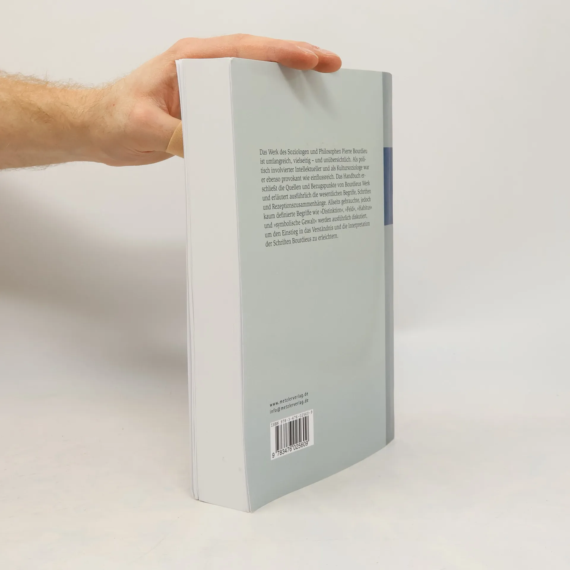 Philosoph, politischer Intellektueller und Kultursoziologe. Das Werk Pierre Bourdieus ist umfangreich und vielseitig. Das Handbuch erschließt die Quellen und Bezugspunkte und erläutert die wesentlichen Begriffe, Schriften und Rezeptionszusammenhänge. Die Bourdieuschen Begriffe (z. B. Habitus , Distinktionsgewinn oder symbolisches Kapital ) wurden innerhalb verschiedenster Wissenschaften angewandt. Ihre Analyse schärft den Blick für unterschiedliche Interpretationsmöglichkeiten seines Gesamtwerks.