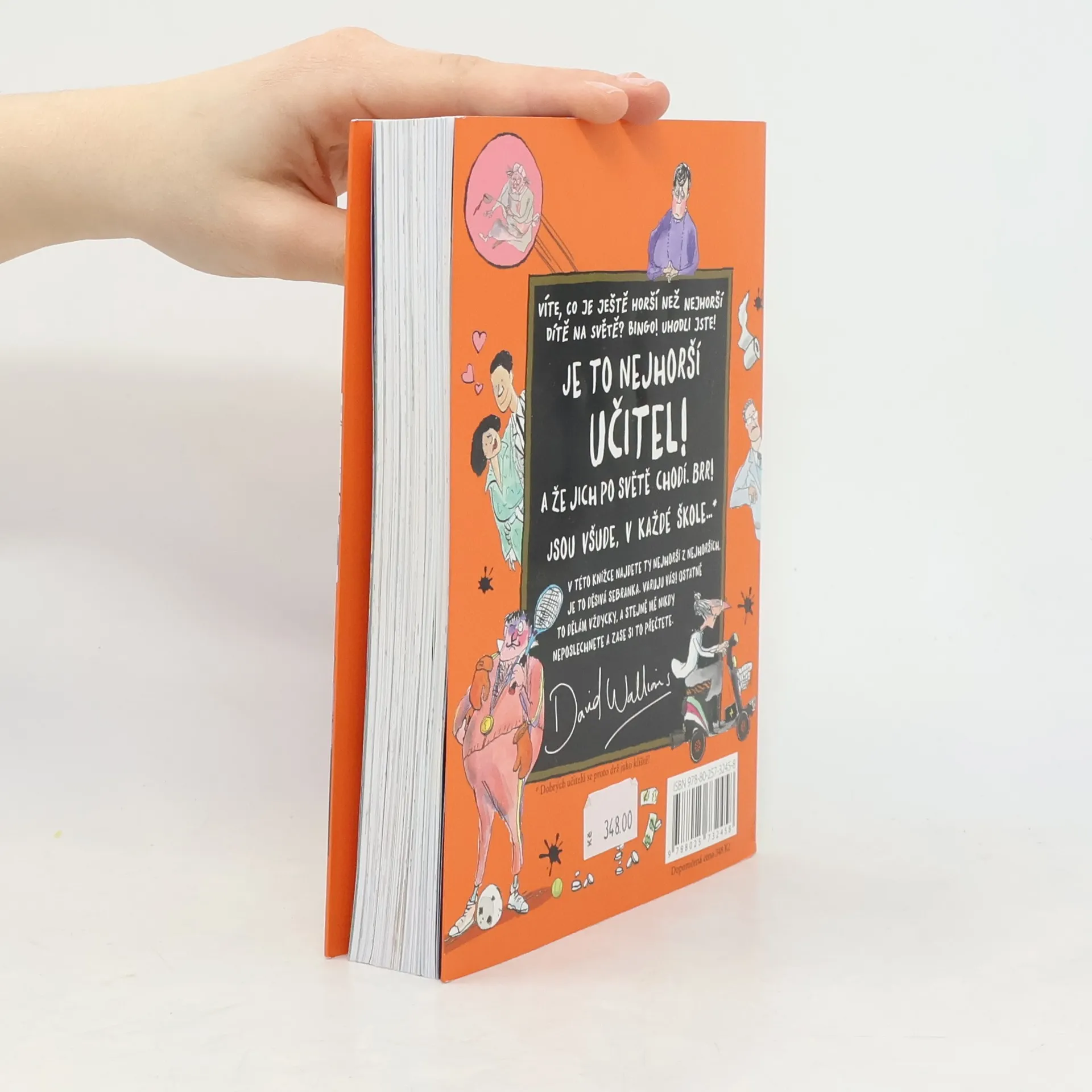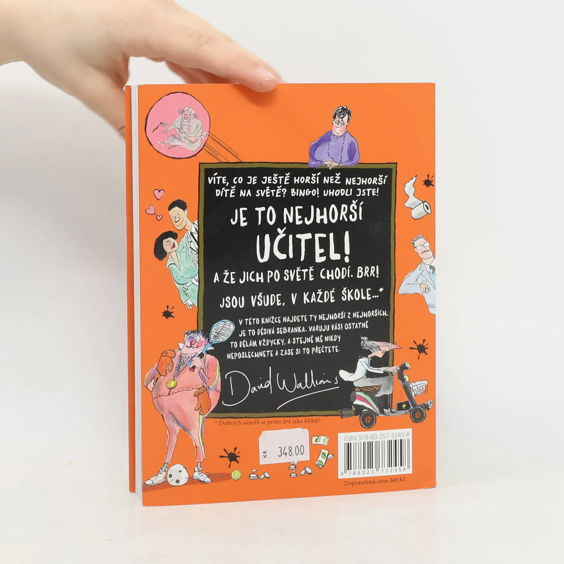 Miliony dětských čtenářů v mnoha zemích, kteří se bavili nad Walliamsovými knihami o nejhorších dětech na světě, se můžou těšit na povedenou sbírku děsivých dospělých, ba co hůř, těch nejděsivějších dospělých vůbec: učitelů. Myslíte si, že vaši učitelé jsou příšerní? Jen počkejte, až poznáte tuhle sebranku! Desítka nádherně odporných pedagogů vás zaručeně donutí dát se na bezhlavý útěk ze školních vrat. Jeden z učitelů trpí nevýslovným strachem, no považte, z dětí! Jiná učitelka se věčně vzteká a nechá po škole každého, kdo se jí nestačí vyhnout, další učí přírodní vědy a je napůl člověk, napůl odporný smrdutý netvor... a to ještě zdaleka není všechno!