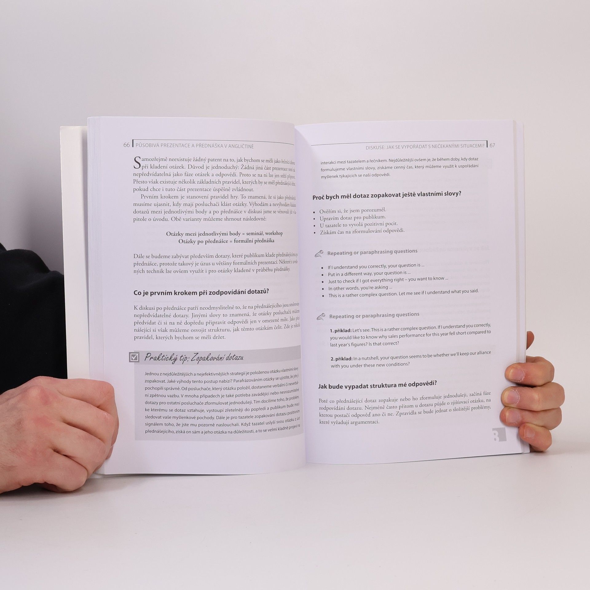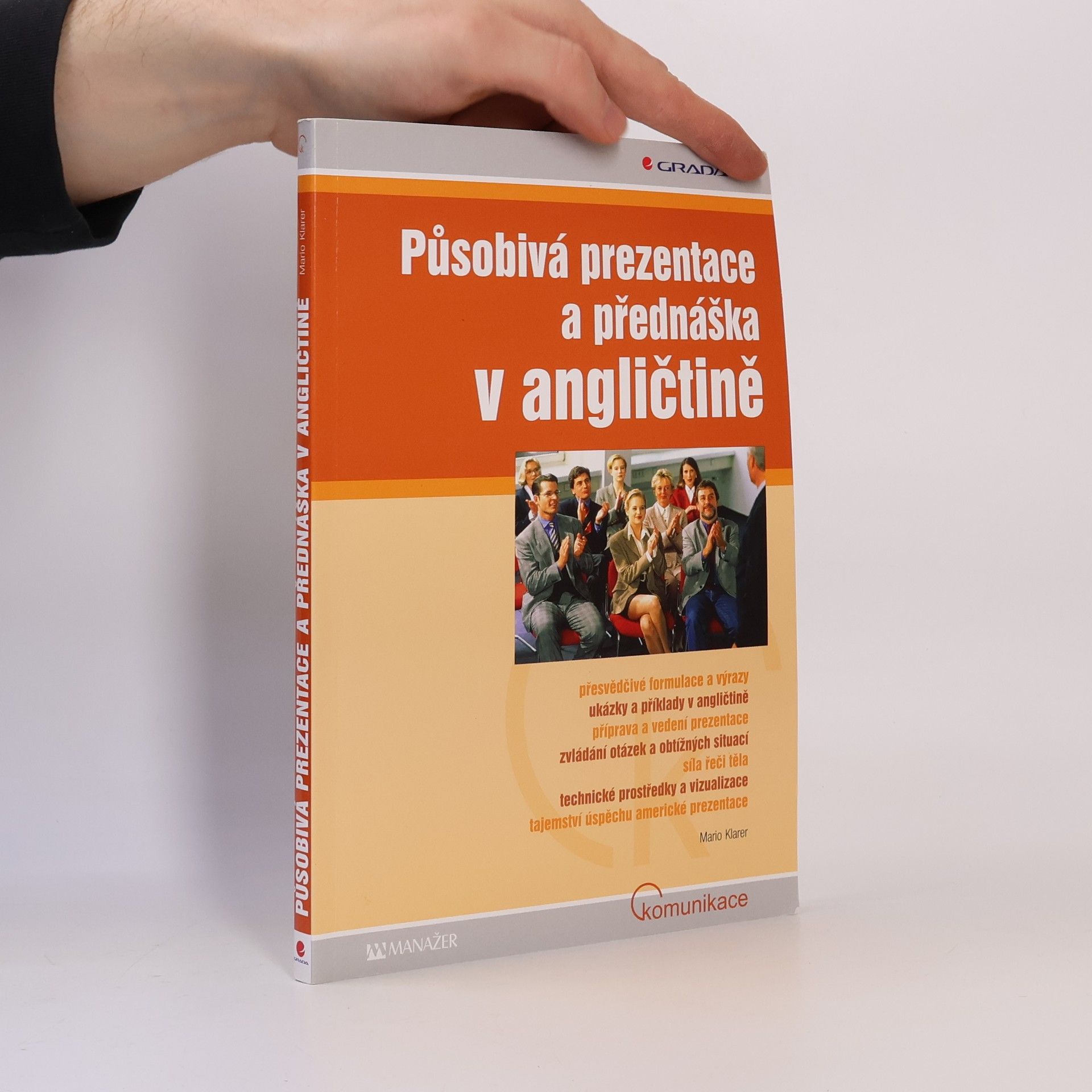 Jak vést prezentace a přednášky v angličtině a používat při tom nejen správné a přesné formulace a výrazy, ale působit také přesvědčivě, sebejistě a uvolněně? Jak přednášet zábavně a s důrazem na to nejdůležitější? V čem spočívá tajemství nejlepších amerických přednášecích technik? Manažeři, obchodníci, poradci, lektoři a všichni ti, kteří potřebují perfektně zvládnout prezentaci či přednášku v anglickém jazyce, v knížce najdou praktické rady, techniky a příklady, jak působivě prezentovat a přednášet, a speciálně jak vést dokonalé přednášky a prezentace v angličtině. Dozvíte se, jak prezentaci zajímavě zahájit, vést její průběh, jak ji působivě zakončit a řídit následnou diskusi, jak otázkami a dalšími prostředky zaujmout publikum a udržet jeho pozornost, jak využít technické prostředky a vizualizaci, jak se vypořádat s obtížnými situacemi a otázkami, jak zapůsobit řečí těla, jak si přednášku naplánovat a vyzkoušet, a jak všechny uvedená pravidla využít i při jiné komunikaci - na poradách, při obchodních jednáních, telefonování a společenské konverzaci. Konkrétní příklady v angličtině, zlatá pravidla pro perfektivní přednášku a prezentaci a kontrolní seznamy vám pomohou stát se dokonalým přednášejícím či prezentátorem.