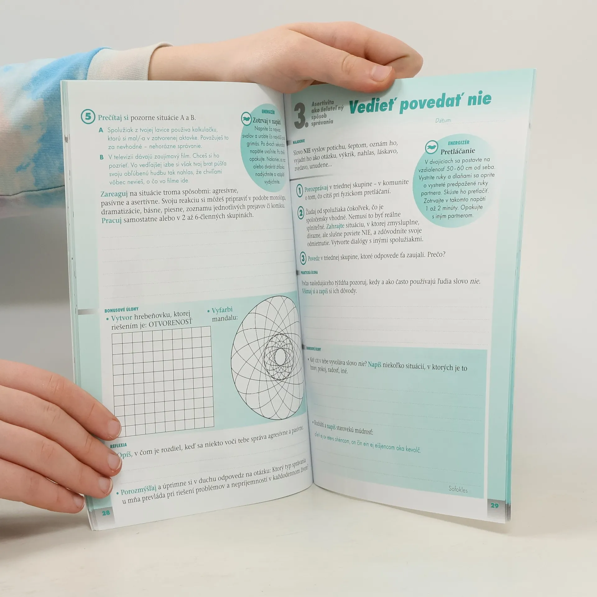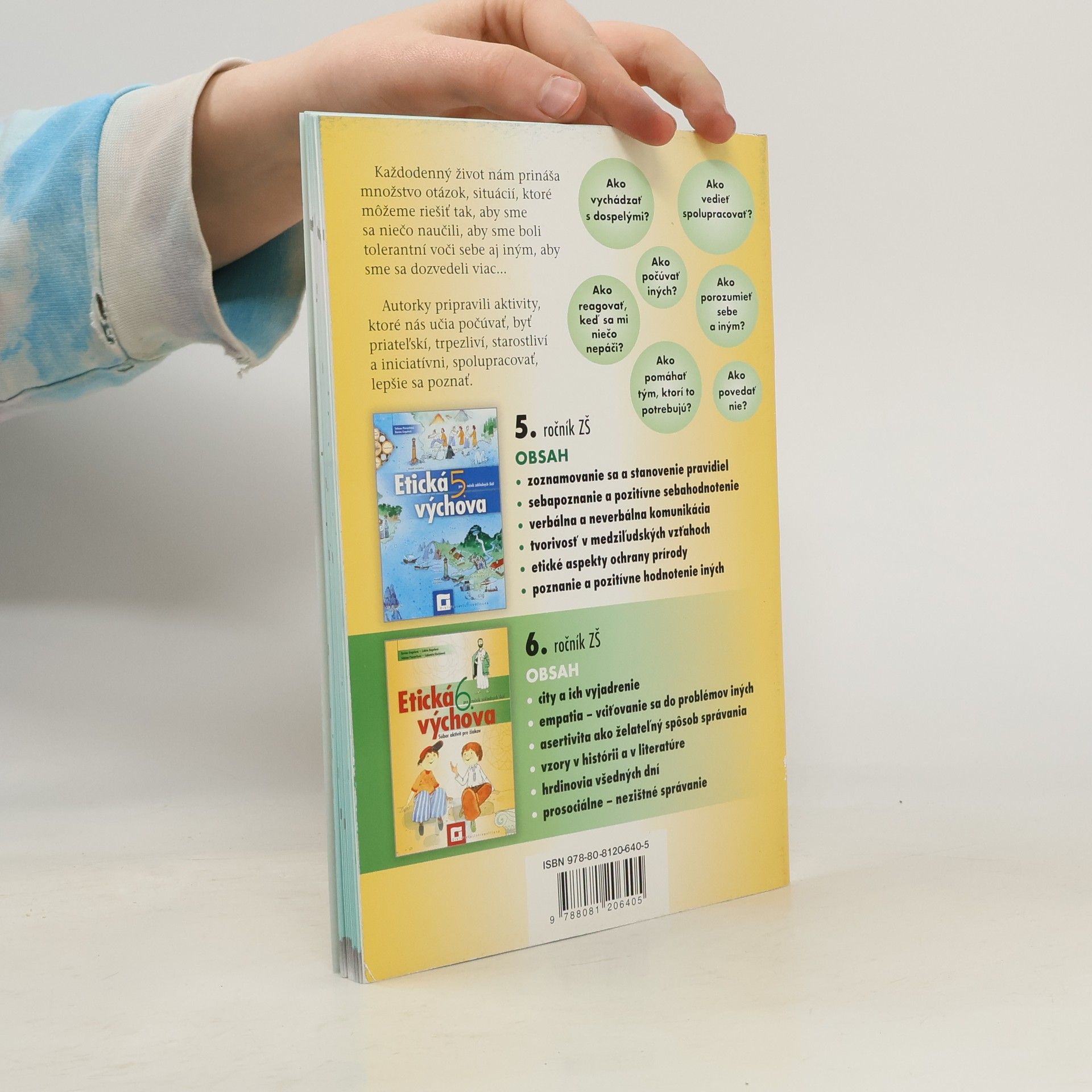 Pracovný zošit tvorí súbor aktivít pre každého žiaka rozpracovaný podľa platných učebných osnov. Obsahuje systematicky usporiadané úlohy, ktoré pomáhajú organizovať priebeh vyučovacích hodín. Venuje sa problematike pozitívneho sebahodnotenia a hodnotenia iných, neúcty človeka k človeku, neznášanlivosti, násilia, pomáha riešiť vzťahy k seba aj druhým. Nájdete v nej námety zo starých antických príbehov, ktoré korešpondujú s vyučovaním starovekých dejín v šiestom ročníku. Táto výborná pomôcka pomáha rozvíjať emocionálnu inteligenciu žiakov. Zámerom autoriek je poskytnúť návod na systematické a efektívne naplnenie vyučovacích hodín etickej výchovy podľa požiadaviek učebných osnov. Pomôže to zvýšiť atraktívnosť a vážnosť predmetu, ktorý je dnes už povinný aj na 1. stupni ZŠ. Autorky pre učiteľov pripravili podrobnú metodickú príručku. Obsah súboru aktivít 1. City a ich vyjadrenie 2. Empatia – vciťovanie 3. Asertivita ako želateľný spôsob správania 4. Reálne a zobrazené vzory 5. Prosociálne – nezištné správanie