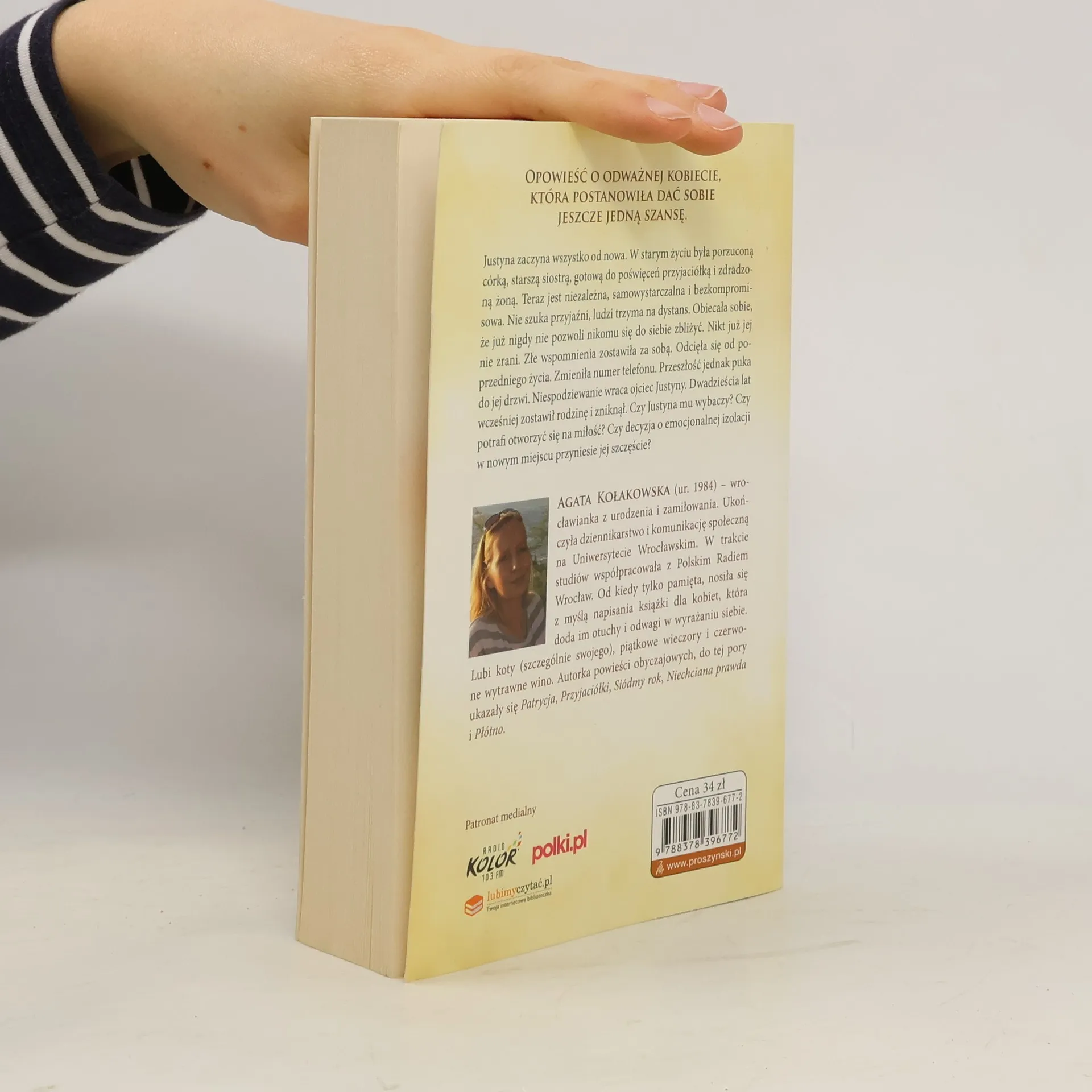 Opowieść o odważnej kobiecie, która postanowiła dać sobie jeszcze jedną szansę. Justyna zaczyna wszystko od nowa. W starym życiu była porzuconą córką, starszą siostrą, gotową do poświęceń przyjaciółką i zdradzoną żoną. Teraz jest niezależna, samowystarczalna i bezkompromisowa. Nie szuka przyjaźni, ludzi trzyma na dystans. Obiecała sobie, że już nigdy nie pozwoli nikomu się do siebie zbliżyć. Nikt już jej nie zrani. Złe wspomnienia zostawiła za sobą. Odcięła się od poprzedniego życia. Zmieniła numer telefonu. Przeszłość jednak puka do jej drzwi. Niespodziewanie wraca ojciec Justyny. Dwadzieścia lat wcześniej zostawił rodzinę i zniknął. Czy Justyna mu wybaczy? Czy potrafi otworzyć się na miłość? Czy decyzja o emocjonalnej izolacji w nowym miejscu przyniesie jej szczęście?