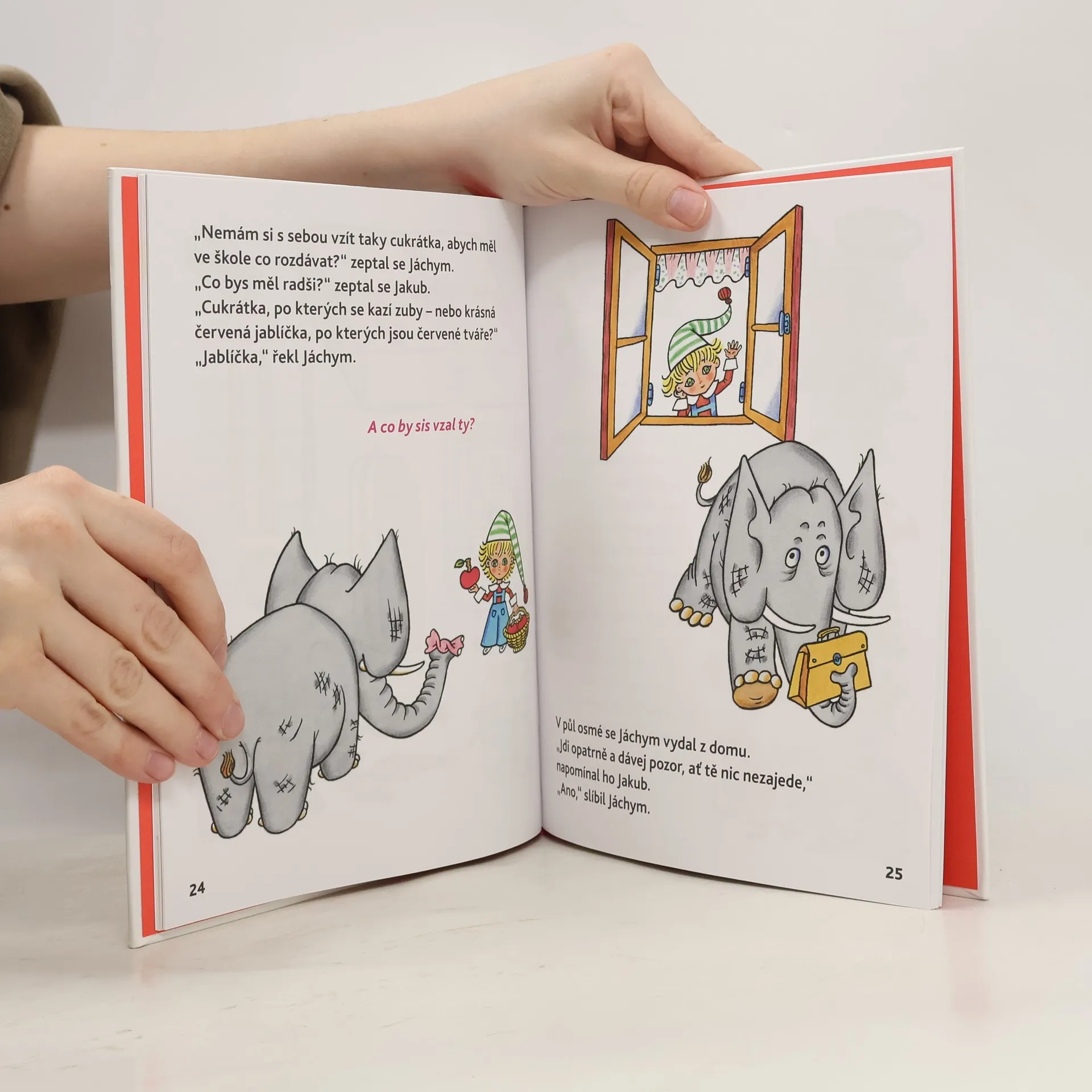 Úspěšná knížka dánského autora pro děti od 5 let o chlapečkovi Jakubovi a jeho slonovi Jáchymovi, který jde poprvé do školy, je vtipně řešené aktivní čtení, kdy rodiče nebo učitelé mohou rozvíjet znalosti i fantazii malých čtenářů. Bohatě ilustrováno Helenou Zmatlíkovou. Doporučujeme všem předškolákům!
