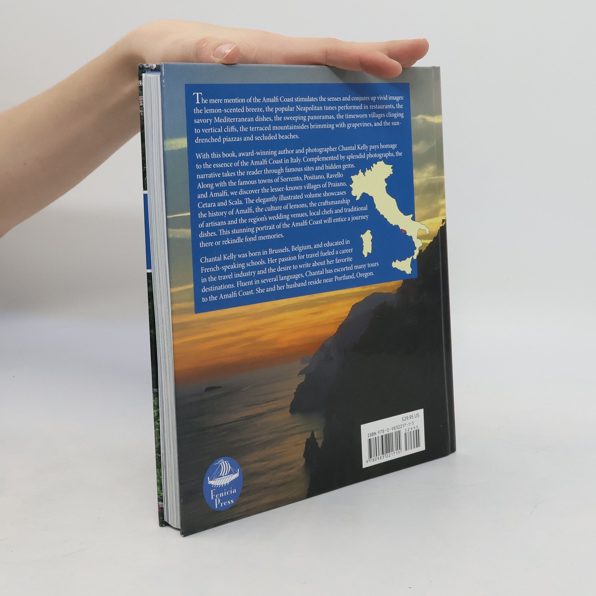 The mere mention of the Amalfi Coast stimulates the senses and conjures up vivid images. The lemon-scented breeze, the popular Neapolitan tunes performed in restaurants, the savory Mediterranean dishes, the sweeping panoramas, the timeworn villages clinging to vertical cliffs, the terraced mountainsides brimming with grapevines, and the sun-drenched piazzas and secluded beaches. With this book, award-winning author and photographer, Chantal Kelly, pays homage to the essence of the Amalfi Coast. Complemented by splendid photographs, the narrative takes the reader through famous sites and hidden gems. Along with the famous towns of Sorrento, Positano, Ravello and Amalfi, we discover the lesser-known villages of Praiano, Cetara and Scala. The elegantly illustrated volume showcases the history of Amalfi, the culture of lemons, the craftsmanship of artisans and the region s wedding venues, local chefs and traditional dishes. This stunning portrait of the Amalfi Coast will entice a journey there or rekindle fond memories.