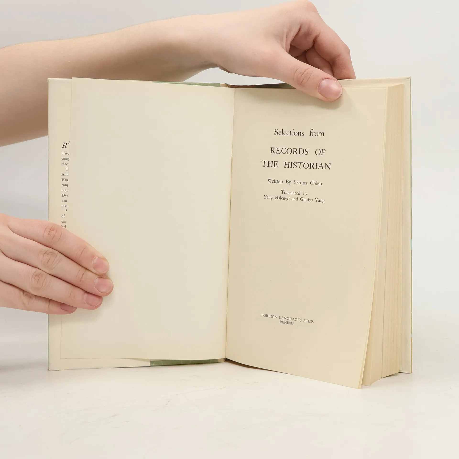 Author: Sima Qian; Translated by Yang Xianyi and Dai Naidie, Order No. 6053, ISBN: 7119028936, Binding: Paperback, Publisher: Foreign Languages Press, Pub Year: 2001, Pages: 497, Language: Chinese-English-----This is a selection of 18 basic annals, biographies and so forth.