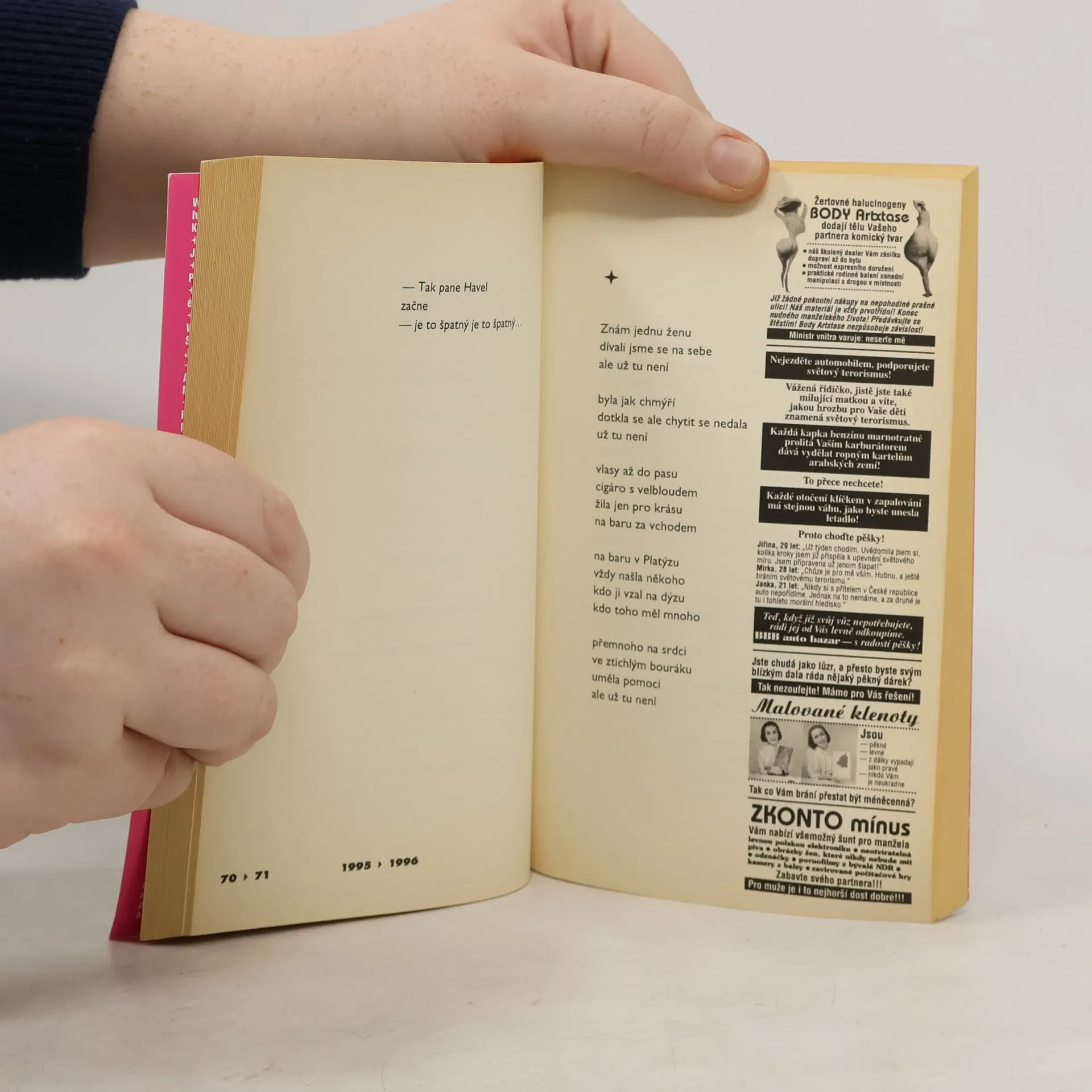 Nový soubor autorových textů obsahuje dvaasedmdesát příběhů, v nichž vystupuje stejný počet nejrůznějších žen, je časově situován do let 1990-2003. Hlavním hrdinou jednotlivých epizod je elegantní svůdce Ferdinand Havel, snažící se v zájmu své svobody vztah s ženou vždy ukončit. Vzápětí ovšem zjistí, že k potvrzení nabyté svobody potřebuje navázat vztah s další ženou. Kniha, záměrně vypravená barvotiskovou obálkou, je spíše než básnickou sbírkou prozaickou poezií s prvky černého humoru a ironie. Samotné děje příběhů se pohybují ve zběsilém tempu a sestavují tak osobitý literární kaleidoskop, proložený kuriózními inzeráty z autorova archivu.