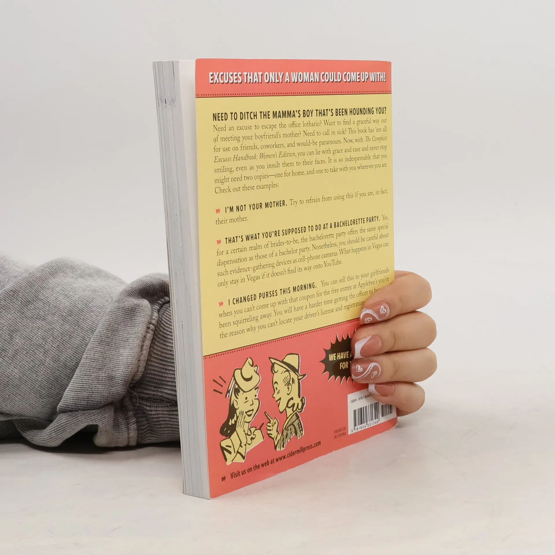 The women's edition of The Complete Excuses Handbook is another great collection of self-justications that women can use again and again. They'll recognize a lot of them already, and marvel at what the authors have come up with. Everything from how to get out of date to why a project is late to what happened to dinner. This is the quintessential collection of excuses that every woman needs to have at her fingertips. A first-of-its-kind collection of excuses that are specifically designed for women and their unique position in the world! From business executive, to mother, wife, lover, girlfriend or best friend - these are the excuses that will make a woman's life a little bit less stressful, a great deal more enjoyable and definitely more carefree. There are excuses for every occasion... to combat every unwanted social engagement, unwanted suitor, or simply the embarrassing manners of her significant other, children, family or friends. This is a laugh-out-loud book from the same author team that brought you The Complete Excuses Handbook .