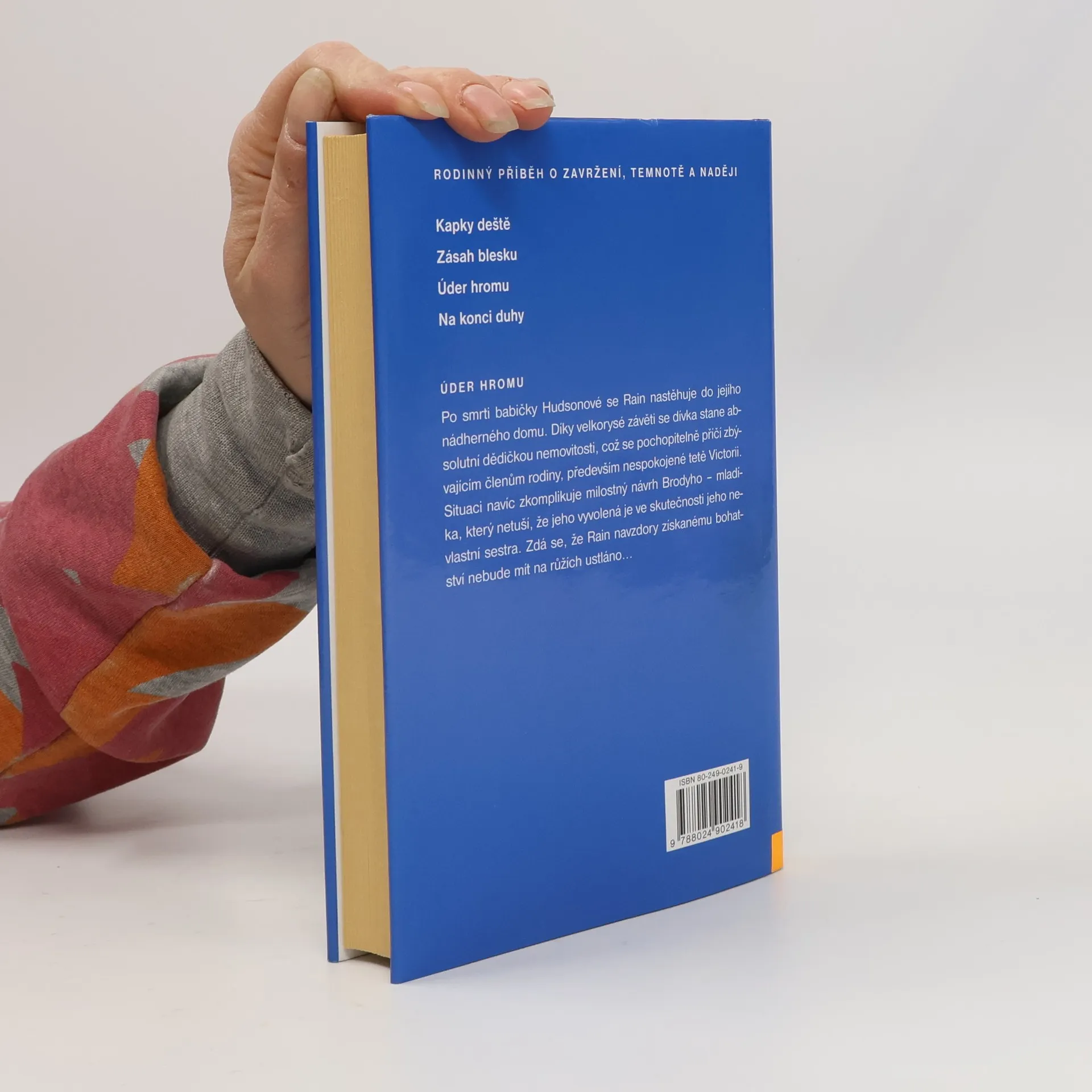 Tetralogie: Kapky deště, Zásah blesku, Úder hromu, Na konci duhy Druhá část rodinné ságy líčí život mladé míšenky na virginském panství její babičky, kde nikdo netuší, že dívka je s nimi pokrevně spřízněná. Babička, která jediná zná dívčinu skutečnou identitu, pošle Rain do prestižní dramatické školy v Londýně a zajistí jí ubytování v rodině své bohaté sestry. Hrdinka tam z vlastní vůle přijíždí nepoznána jako pomocnice v domácnosti a brzy pozná většinu tajemství této rodinné větve, především jejich zoufalství ze ztráty jediného dítěte. Kromě touhy po studiu má dívka před sebou ještě jeden veliký cíl - vypátrat tajemství existence svého pravého otce, což se jí nakonec s pomocí přítele ze školy podaří. Další etapa v životě hrdinky nastává po smrti milované babičky, která ji odkázala většinu svého jmění a dala jí tak možnost uskutečnit všechny dávné plány, a poznat skutečné charaktery svých příbuzných.... celý text