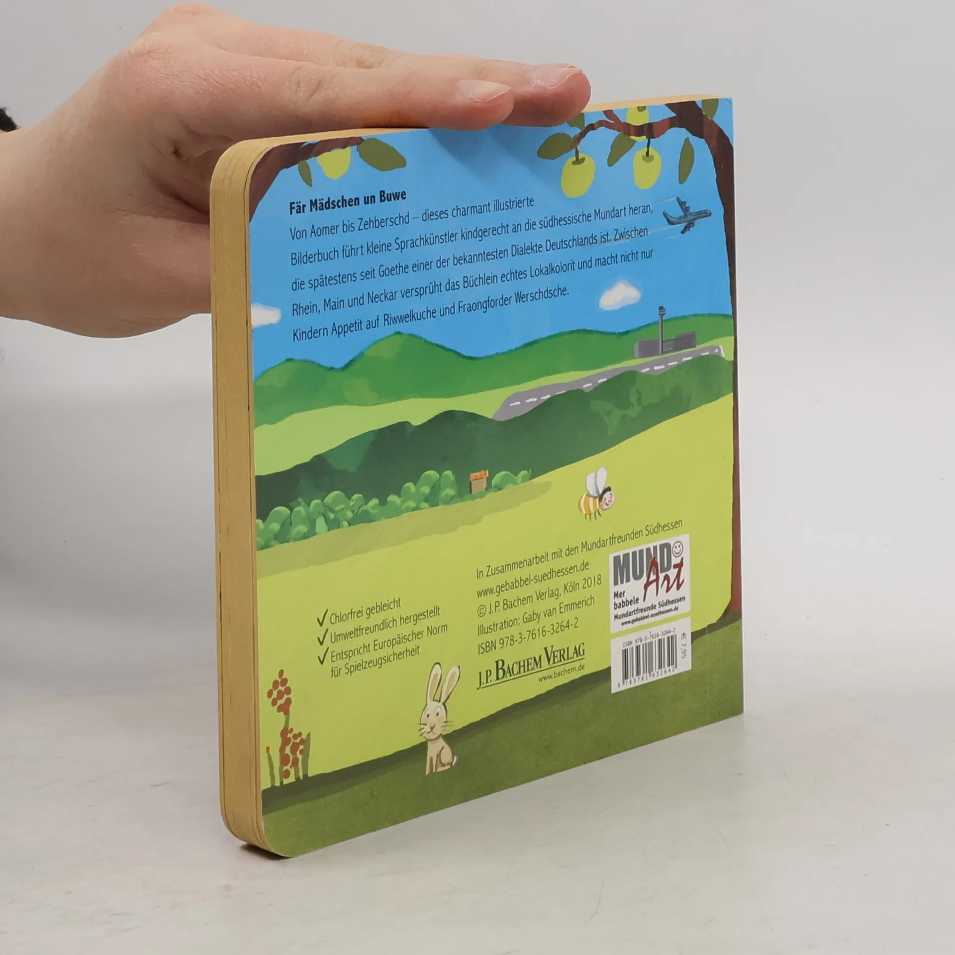 Ei horsche se mal, wer babbelt denn da? Das Hessische, und insbesondere die südhessische Mundart, ist mindestens seit Goethe einer der bekanntesten Dialekte Deutschlands. Gaby van Emmerichs Kinderbuch führt kleine Sprachkünstler auf neun charmant illustrierten Papp-Doppelseiten an den weichen Zungenschlag heran – und versprüht zwischen Frankfurt, Darmstadt und Wiesbaden echten Lokalkolorit. Ein großer Spaß nicht nur für Meedscher un Bube!