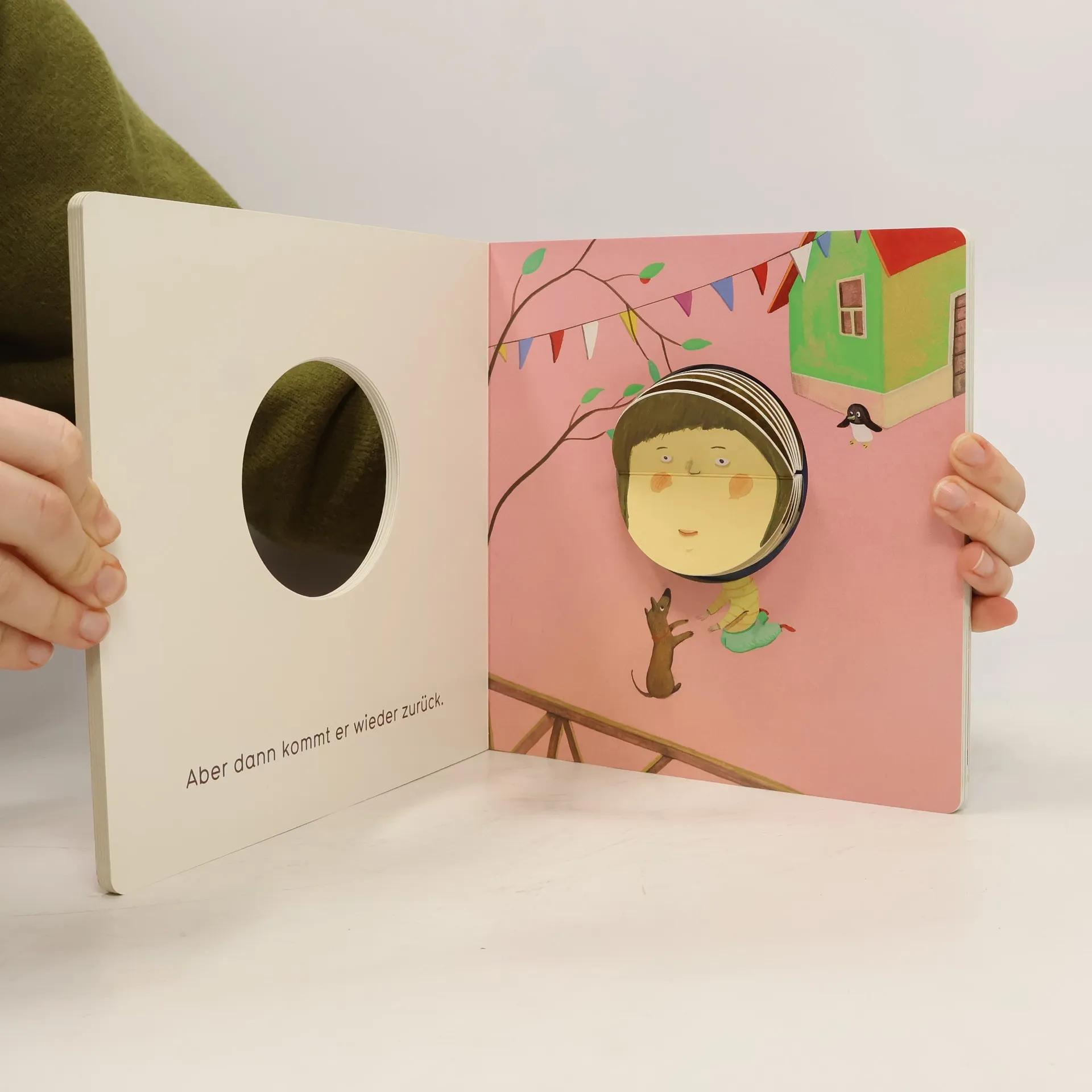In Isabel Pins außergewöhnlichem Pappbilderbuch erlebt ein Kind mit seinem Hund einen Tag voller wechselnder Gefühle. Das Buch enthält einen Kopf mit verschiedenen Gesichtsausdrücken, die passend zu den Szenen geklappt werden können. Es lädt zum Spielen und Gestalten ein und bietet viele Überraschungen.
