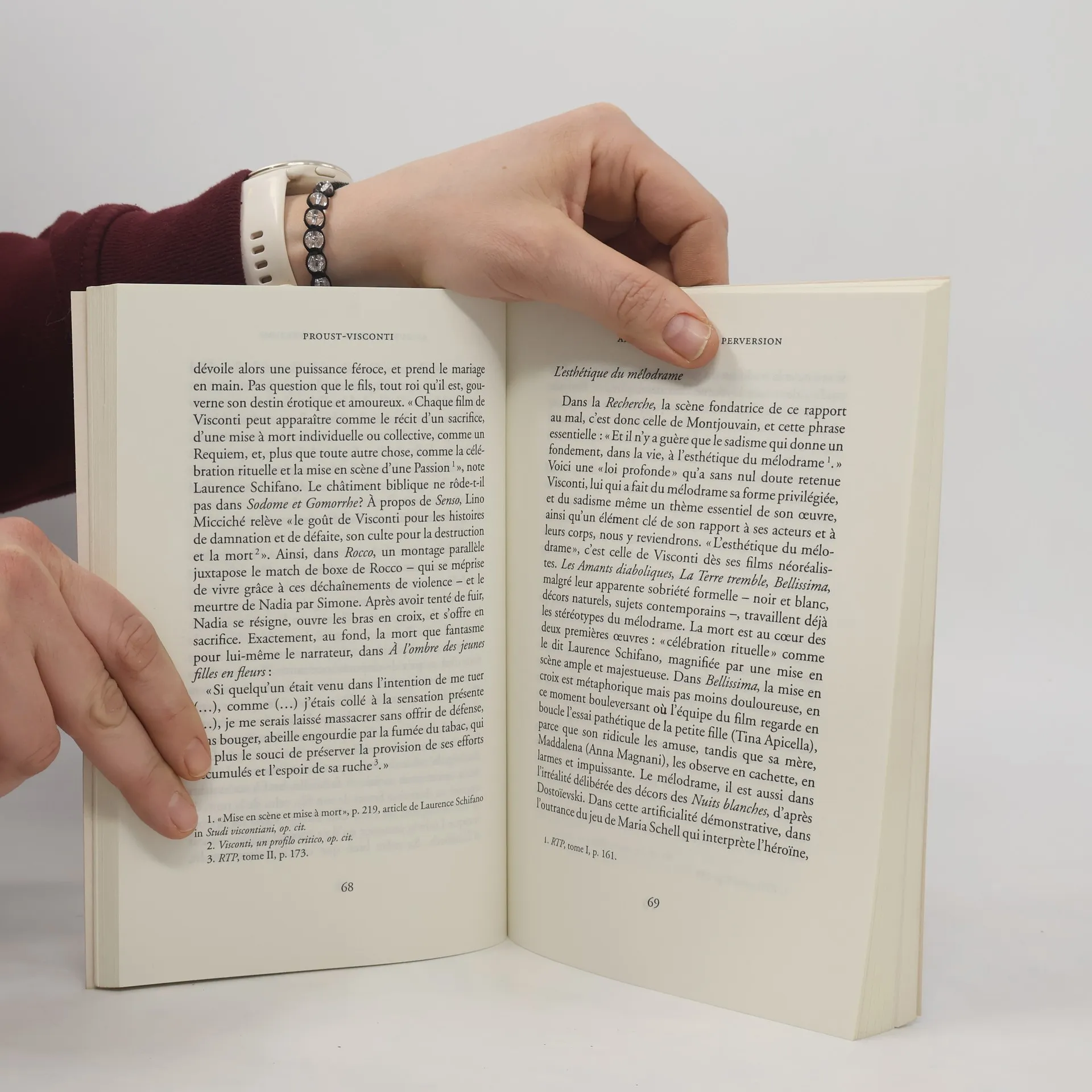 Il existe entre les vies du romancier et du cinéaste, des coïncidences, des correspondances, des parentés biographiques et surtout de création. Toute sa vie, le cinéaste sera hanté par l'oeuvre proustienne et par ses personnages et il ne cessera de la mettre en scène. Il transpose la relation entre Charlus et Morel dans Senso, recrée la plage de Balbec dans Mort à Venise, etc.