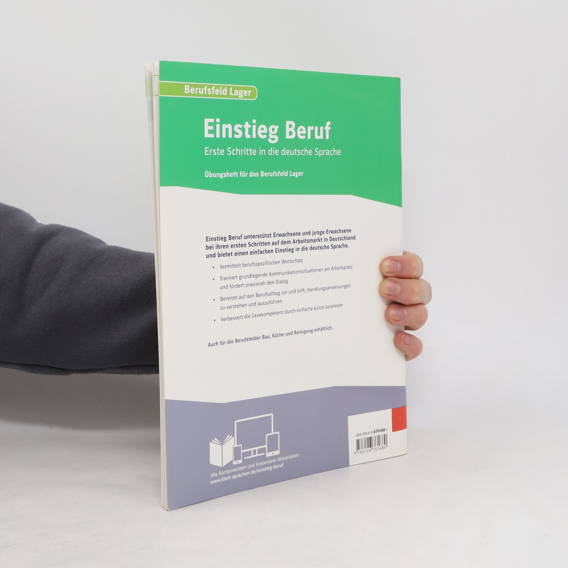 Die Reihe Einstieg Beruf unterstützt Erwachsene und junge Erwachsene bei ihren ersten Schritten auf dem Arbeitsmarkt in Deutschland und bietet einen einfachen Einstieg in die deutsche Sprache. Übungsheft zum Berufsfeld Lager - Vermittelt berufsspezifischen Wortschatz - Trainiert grundlegende Kommunikationssituationen am Arbeitsplatz und fördert praxisnah den Dialog - Bereitet auf den Berufsalltag vor und hilft, Handlungsanweisungen zu verstehen und auszuführen - Verbessert die Lesekompetenz durch einfache kurze Lesetexte