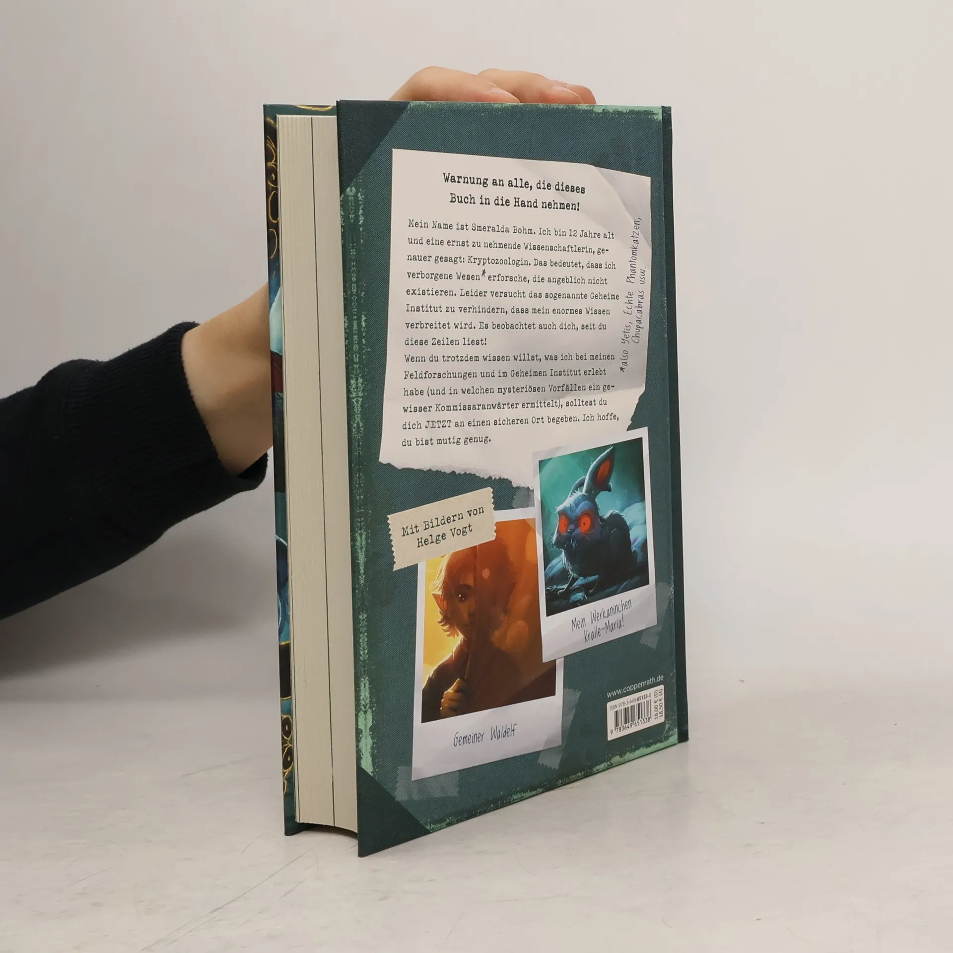 Warnung an alle, die dieses Buch lesen wollen! Mein Name ist Smeralda Bohm. Ich bin 12 Jahre alt und eine ernst zu nehmende Wissenschaftlerin, genauer gesagt: Kryptozoologin. Das bedeutet, dass ich verborgene Wesen* erforsche, die angeblich nicht existieren. Leider versucht das sogenannte Geheime Institut zu verhindern, dass mein enormes Wissen verbreitet wird. Es beobachtet auch dich, seit du diese Zeilen liest! Wenn du trotzdem wissen willst, was ich bei meinen Feldforschungen und im Geheimen Institut erlebt habe (und in welchen mysteriösen Vorfällen ein gewisser Kommissaranwärter ermittelt), solltest du dich JETZT an einen sicheren Ort begeben. Denk daran: Wissen bedeutet Lebensgefahr! Ich hoffe, du bist mutig genug. * also Yetis, Echte Phantomkatzen, Chupacabras usw.
