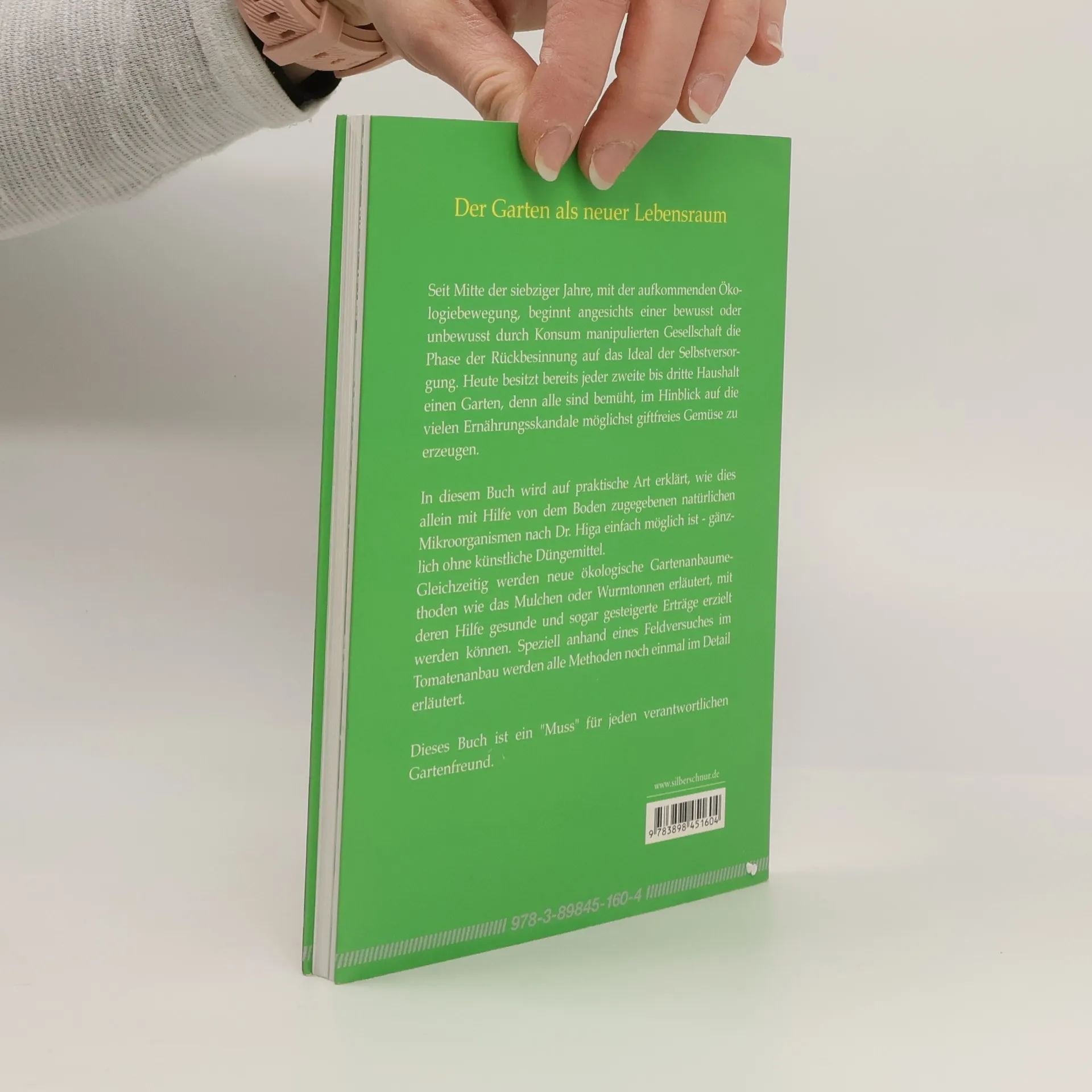 Seit Mitte der siebziger Jahre, mit der aufkommenden Ökologiebewegung, beginnt angesichts einer bewusst oder unbewusst durch Konsum manipulierten Gesellschaft die Phase der Rückbesinnung auf das Ideal der Selbstversorgung. Heute besitzt bereits jeder zweite bis dritte Haushalt einen Garten, denn alle sind bemüht, im Hinblick auf die vielen Ernährungsskandale möglichst giftfreies Gemüse zu erzeugen. In diesem Buch wird auf praktische Art erklärt, wie dies allein mit Hilfe von dem Boden zugegebenen natürlichen Mikroorganismen nach Dr. Higa einfach möglich ist – gänzlich ohne künstliche Düngemittel. Gleichzeitig werden neue ökologische Gartenanbaumethoden wie das Mulchen oder Wurmtonnen erläutert, mit deren Hilfe gesunde und sogar gesteigerte Erträge erzielt werden können. Speziell anhand eines Feldversuches im Tomatenanbau werden alle Methoden noch einmal im Detail erläutert. Dieses Buch ist ein „Muss“ für jeden verantwortlichen Gartenfreund.