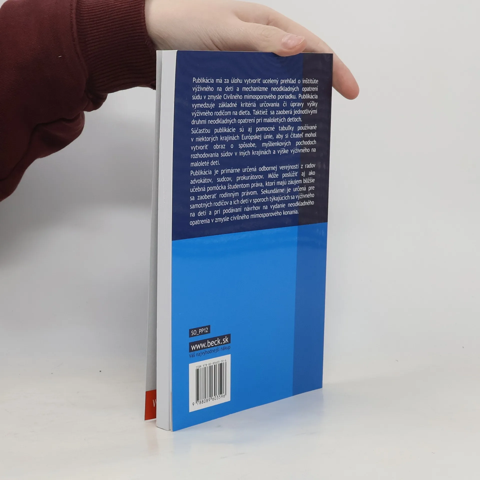 Publikácia má za úlohu vytvoriť ucelený prehľad o inštitúte výživného na deti a mechanizme neodkladných opatrení súdu v zmysle Civilného mimosporového poriadku. Jej úlohou je zamerať sa na vyživovaciu povinnosť rodičov k deťom, preto sú ostatné druhy vyživovacích povinností medzi príbuznými uvádzané v publikácii len krátko. Publikácia vymedzuje základné kritériá určovania či úpravy výšky výživného rodičom na dieťa. Taktiež sa zaoberá jednotlivými druhmi neodkladných opatrení pri maloletých deťoch. Súčasťou publikácie sú aj pomocné tabuľky používané v niektorých krajinách Európskej únie, aby si čitateľ mohol vytvoriť obraz o spôsobe, myšlienkových pochodoch rozhodovania súdov v iných krajinách a výške výživného na maloleté deti. V publikácii sú vybrané na porovnanie práve tie krajiny, z ktorých si ženy zo Slovenska najčastejšie vyberajú otcov svojich detí. Publikácia je primárne určená odbornej verejnosti z radov advokátov, sudcov, prokurátorov. Môže poslúžiť aj ako učebná pomôcka študentom práva, ktorí majú záujem bližšie sa zaoberať rodinným právom. Sekundárne je určená pre samotných rodičov a ich deti v sporoch týkajúcich sa výživného na deti a pri podávaní návrhov na vydanie neodkladného opatrenia v zmysle civilného mimosporového konania.