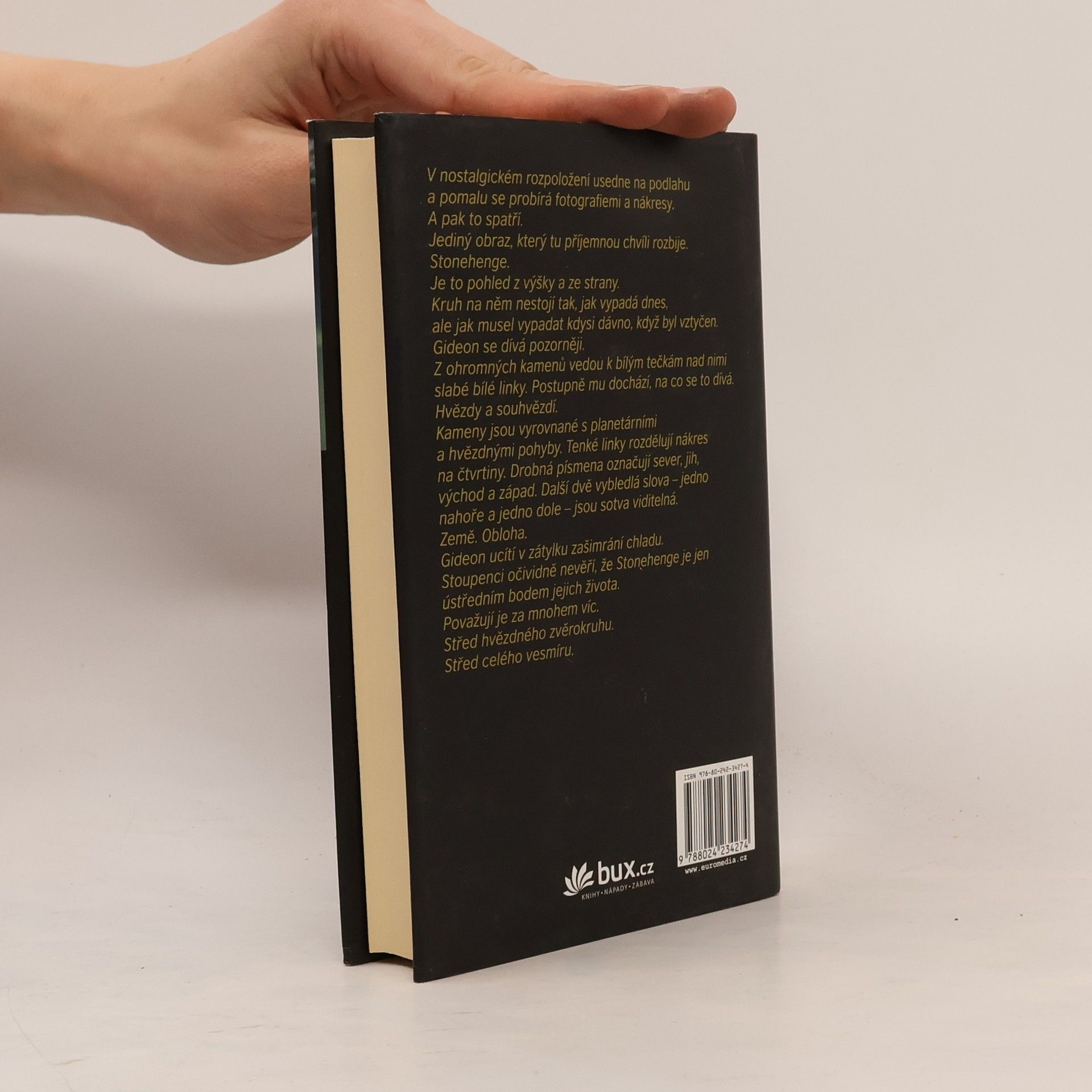 Osm dní před letním slunovratem je ve Stonehenge podle pradávných rituálů obětován člověk. Téhož dne se profesor Nathaniel Chase, uznávaný kunsthistorik a archeolog, na svém honosném starobylém jihoanglickém sídle, zastřelí. Svému synovi Gideonovi, s nímž se léta nestýkal, zanechá dopis s podivným vzkazem – a desítky zašifrovaných deníků. Společně s policistkou Megan Bakerovou odhalí Gideon existenci sekty zasvěcené ochraně prastarého Stonehenge. V jejím čele však právě stanul velmistr, který se rozhodl za pomoci lidských obětí obnovit duchovní moc kamenů. A jeho stoupenci už připravují další krvavý obřad… Napínavý thriller, v němž nechybějí záhadné kódy, mystické symboly a množství detailů z historie dodnes tajemstvím opředeného Stonehenge, je zdařilým debutem vycházející hvězdy žánru mysteriózních dobrodružných příběhů.