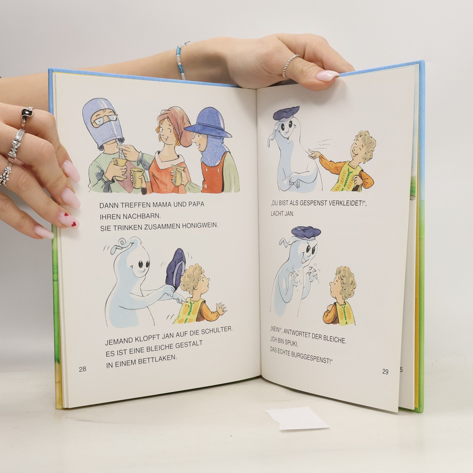 Rez.: Die Lesetiger-Ritterburggeschichten erscheinen parallel in 3 verschiedenen Ausgaben für Leseanfänger: in der normalen, großen Fibelschrift, in der Vereinfachten Ausgangsschrift (beide ID 30/07 bzw. BA 9/07) und - wie in der zur Begutachtung vorliegenden Ausgabe - IN GROSSBUCHSTABEN. Ritter gibt es zum Leidwesen vieler Kinder zwar längst nicht mehr, aber Ritterburgen zeugen bis heute vom abenteuerlichen Mittelalter. So spielen 3 der 4 kurzen Geschichten in der Gegenwart und erzählen von Burgenbesuchen, werden aber durch kleine Kunstgriffe mit den vergangenen Zeiten in Verbindung gebracht. In der 1. Geschichte durch raffinierte Einbauten des ehemaligen Schlossherrn, in der 2. und 3. durch Spukgestalten. Wer sich ganz in die Ritterzeit zurückversetzen möchte, kann das in der 4. Episode tun. Mit 4 fröhlichen Bildern pro Doppelseite und überschaubarer Textmenge schaffen die Bildergeschichten mit diesem ewig aktuellen Thema Leseanreize schon für die frühen Phasen des Lesenlernens. Die Ausgabe in Großbuchstaben sollte aber nur dort eingesetzt werden, wo diese Methode auch zum Lesenlernen angewendet wird. (Andrea Wanner).
