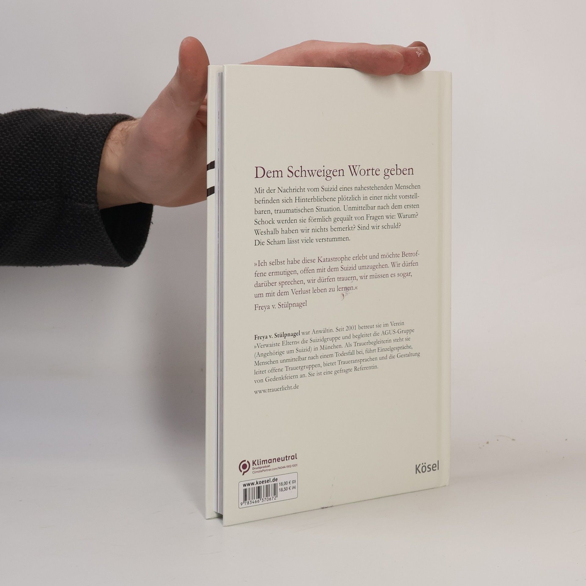 Die Nachricht vom Suizid ist ein Schock. Schon kurze Zeit danach muss die Beerdigung organisiert werden: eine fast nicht zu bewältigende Situation. Dann kommen Trauer, Schuld- und Versagensgefühle. Die Autorin hat dies selbst erlebt. Nach einer Zeit tiefster Niedergeschlagenheit integrierte sie diesen Schicksalsschlag ins Leben. Sie weiß, wovon sie spricht, wenn sie Hinterbliebenen mit ihrem Rat zur Seite steht. Ausstattung: Mit zahlr. s/w-Fotos, Sonderfarbe