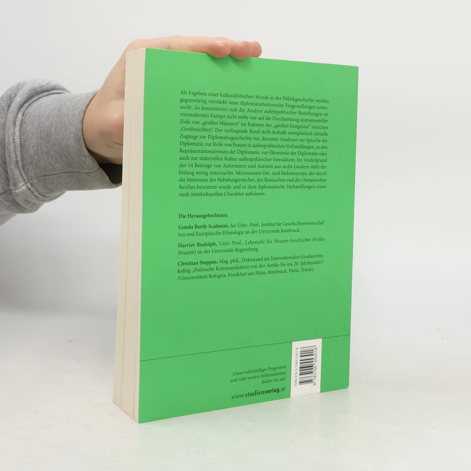 Diplomatiegeschichte erlebt derzeit eine Renaissance, angestoßen durch eine kulturalistische Wende in der Politikgeschichte. Die Analyse außenpolitischer Beziehungen im vormodernen Europa wird nicht mehr ausschließlich durch die instrumentellen Ziele „großer Männer“ und die „großen Ereignisse“ zwischen den „Großmächten“ geprägt. Der vorliegende Band präsentiert aktuelle Zugänge zur Diplomatiegeschichte, darunter die Sprache der Diplomatie, die Rolle von Frauen in Verhandlungen, Repräsentationsformen, die Ökonomie der Diplomatie und die materielle Kultur außenpolitischer Interaktionen. Besonders beleuchtet wird der bislang wenig untersuchte Aktionsraum Ost- und Südosteuropa, der stark von den außenpolitischen Interessen der Habsburger, Russen und Osmanen geprägt war. Diese Imperien erstreckten sich über Europa hinaus und schufen spezifische Rahmenbedingungen, die sich von denen Westeuropas unterschieden und besondere Herausforderungen für diplomatische Akteure darstellten. Die Beiträge basieren auf wissenschaftlichen Vorträgen, die im Rahmen von drei relevanten Konferenzen in den Jahren 2011 und 2012 gehalten wurden: dem 13. Internationalen Kongress zur Erforschung des 18. Jahrhunderts in Graz, dem 20. Symposium des International Committee of Pre-Ottoman and Ottoman Studies in Rethymno sowie dem Österreichischen Historikertag in Krems.