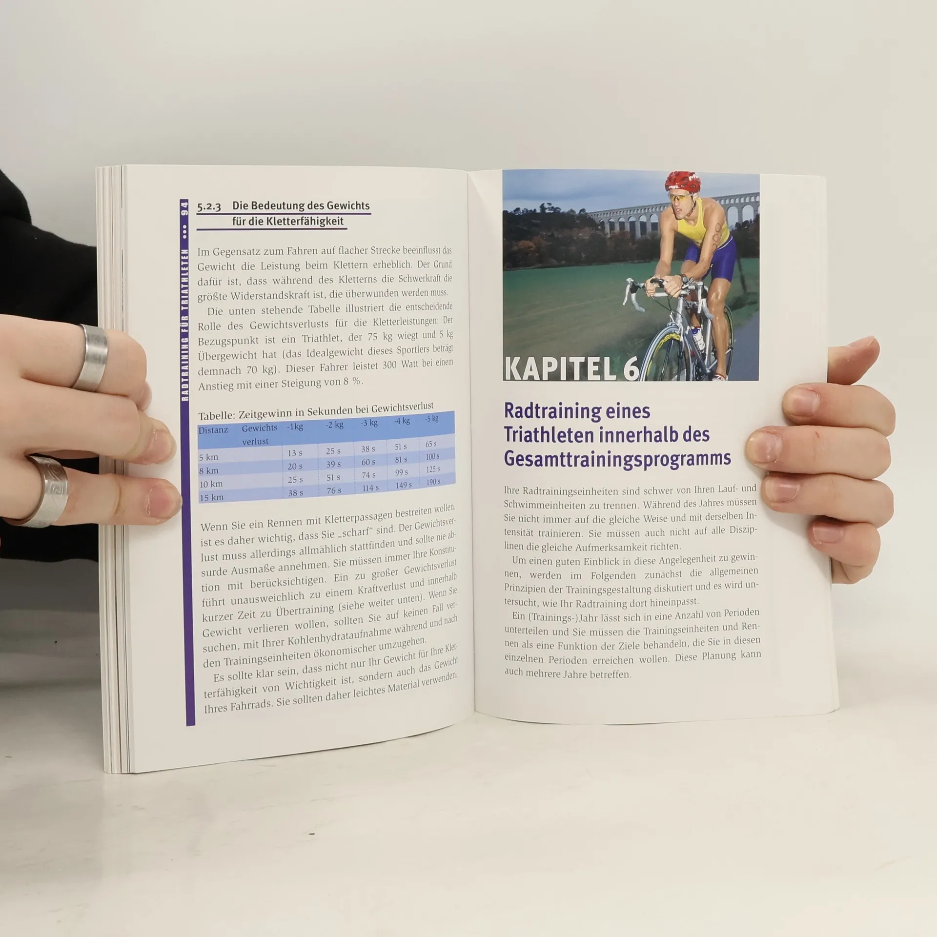 Dieses Buch wurde für die speziellen Bedürfnisse von Triathleten geschrieben, damit sie das Radfahren problemlos in ihr Gesamttraining integrieren können. Alle Aspekte des triathlonspezifischen Radtrainings, wie z. B. Trainingsformen, das Training mit dem Herzfrequenzmessgerät oder die Fahrtechnik, werden anhand von Beispielen aus konkreten Trainingsplänen erläutert. Jeder Triathlet kann diese Pläne auf seine eigenen Bedürfnisse hin abstimmen. Fragen zum Übertraining werden ebenso behandelt wie die Übergänge vom Schwimmen und zum Laufen. Besondere Aufmerksamkeit gilt außerdem der Ernährung des Radsportlers, dem effektivsten Klettertraining, dem Krafttraining auf dem Rad und der Problematik von Rennen mit erlaubtem bzw. verbotenem Windschattenfahren.