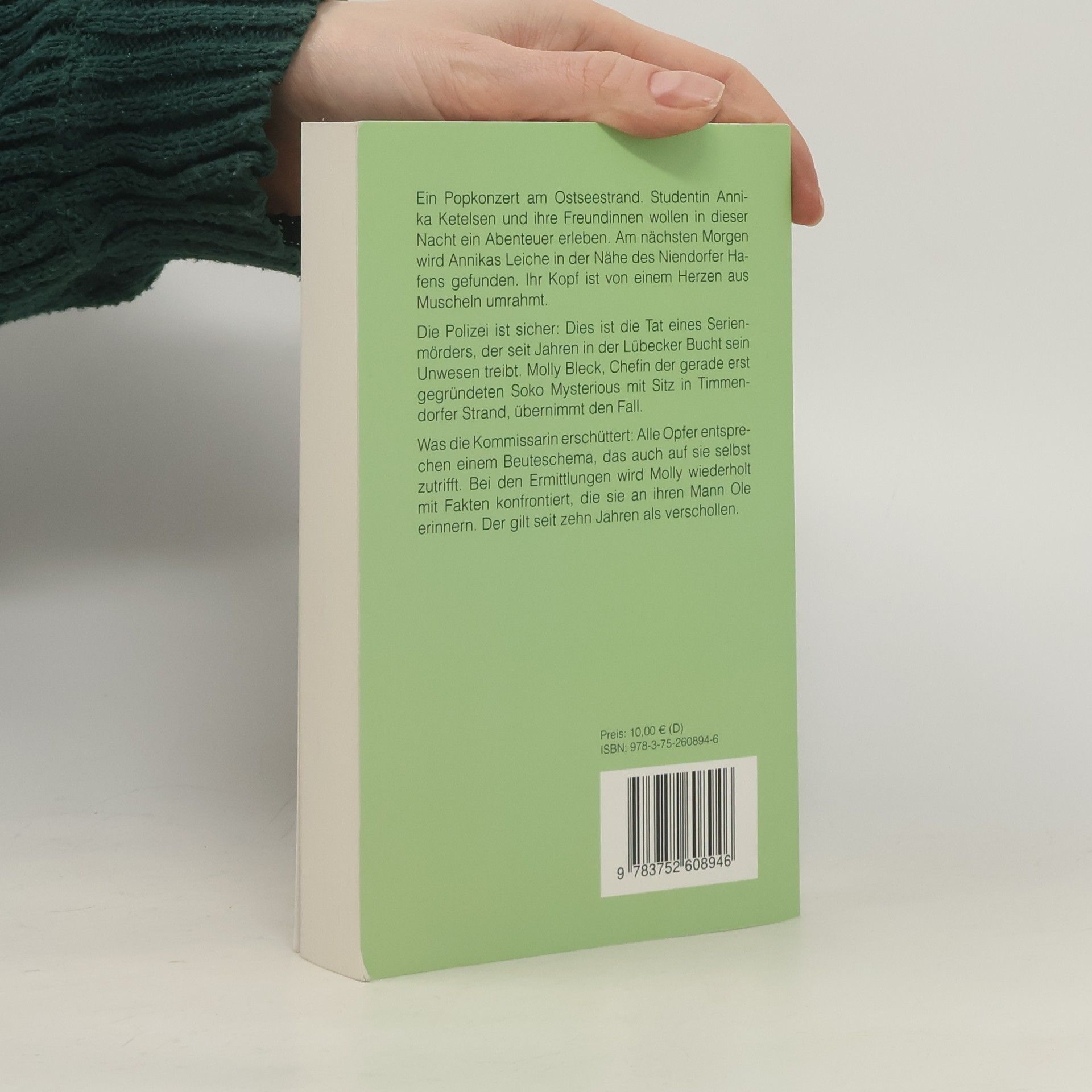 Ein Popkonzert am Ostseestrand. Studentin Annika Ketelsen und ihre Freundinnen wollen in dieser Nacht ein Abenteuer erleben. Am nächsten Morgen wird Annikas Leiche in der Nähe des Niendorfer Hafens gefunden. Ihr Kopf ist von einem Herzen aus Muscheln umrahmt. Die Polizei ist sicher: Dies ist die Tat eines Serienmörders, der seit Jahren in der Lübecker Bucht agiert. Molly Bleck, Chefin der gerade erst gegründeten Soko Mysterious mit Sitz in Timmendorfer Strand, übernimmt den Fall. Was die Kommissarin erschüttert: Alle Opfer entsprechen einem Beuteschema, das auch auf sie selbst zutrifft. Bei den Ermittlungen wird Molly wiederholt mit Fakten konfrontiert, die sie an ihren Mann Ole erinnern. Der gilt seit zehn Jahren als verschollen.
