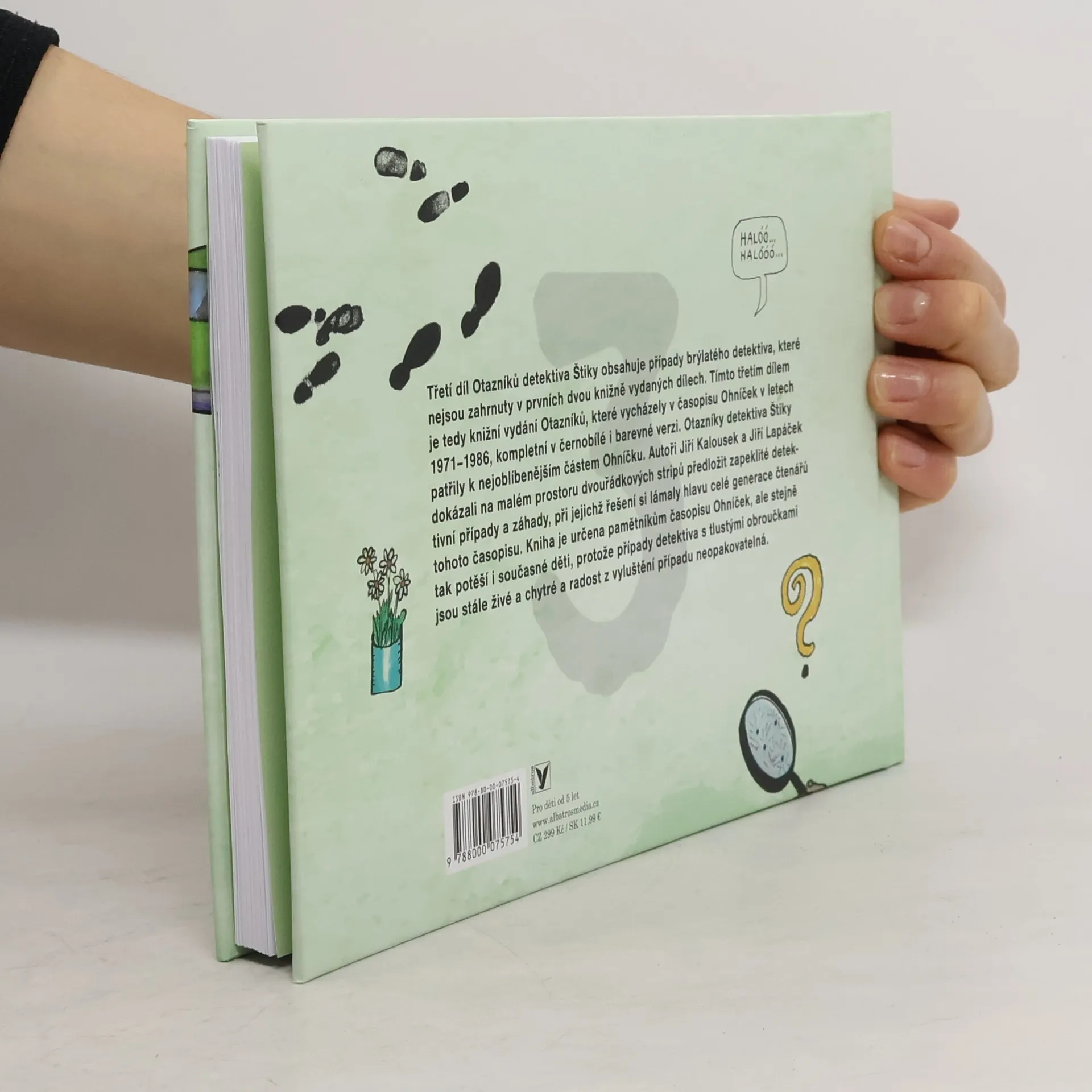 Třetí díl Otazníků detektiva Štiky uzavírá knižní vydání případů brýlatého detektiva, které vycházely v časopisu Ohníček v letech 1971–1986. Na malém prostoru většinou pěti komiksových okének dokázali autoři Jiří Lapáček a Jiří Kalousek předložit případ, který není vždy lehký k vyřešení. Věříme, že Otazníky detektiva Štiky potěší pamětníky i současné děti, protože radost z vyluštění detektivova případu je neopakovatelná.