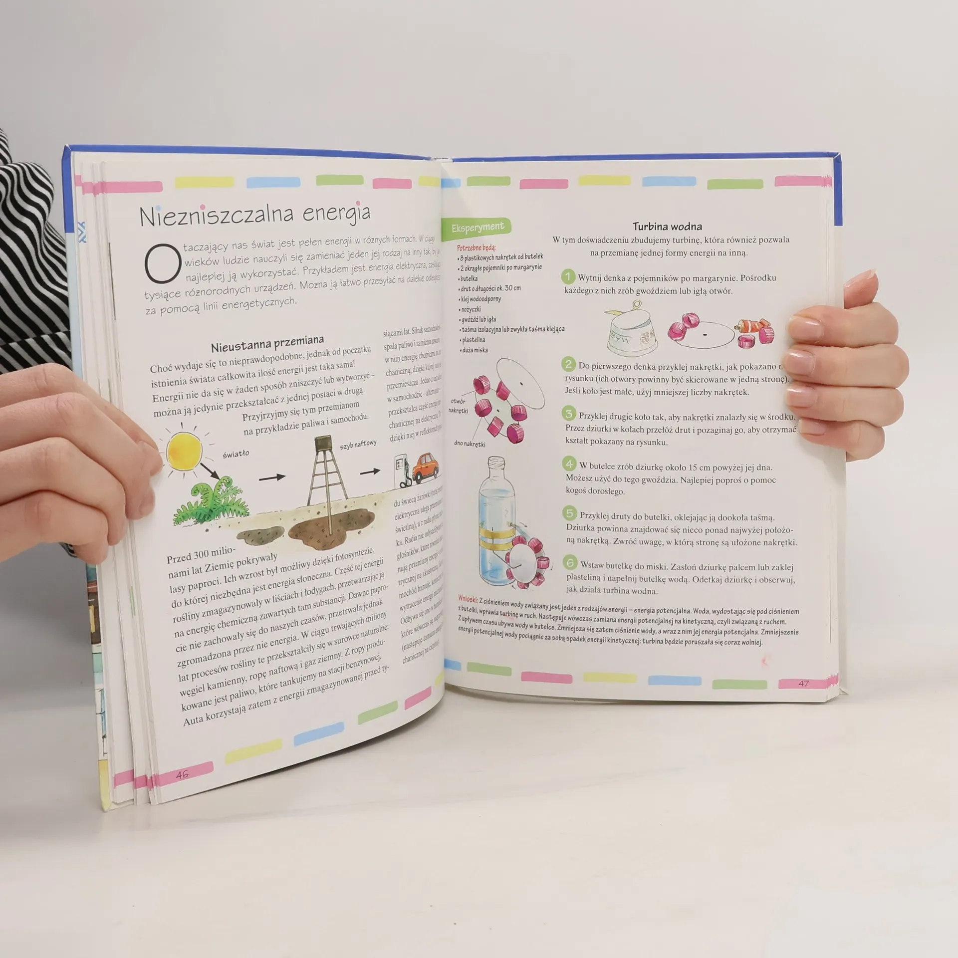 Każde dziecko uwielbia eksperymentować, bo samodzielnie wykonywanie prostych doświadczeń to świetna zabawa i pouczająca przygoda. Wykorzystując znakomite pomysły zawarte w tej książce dziecko poczuje się jak prawdziwy inżynier i przekona się, jak ciekawe i łatwe mogą być nauki techniczne. By zgłębić podstawowe prawa fizyki i chemii nie potrzebujemy nadzwyczajnych urządzeń i trudnodostępnych substancji. Tak naprawdę, aby dostrzec magię nauki i zrozumieć jak ciekawą przygodą może być zgłębianie tajemnic i poszukiwanie odpowiedzi na proste ale fascynujące pytania wystarczą najprostsze materiały i czynności. Zatem zapraszamy do niesamowitej zabawy w świecie fascynujących, a jednocześnie bardzo pouczających eksperymentów. W czasie naszej podróży po świecie nauki i techniki dzieci zbudują własną starożytną machinę wojenną, dowiedzą się, jak zmusić balonik, by nadmuchał się sam, stworzą niezwykłą miksturę, która w tajemniczy sposób zmienia swoje właściwości oraz zamienią puszkę po coca coli w wirujący silnik.