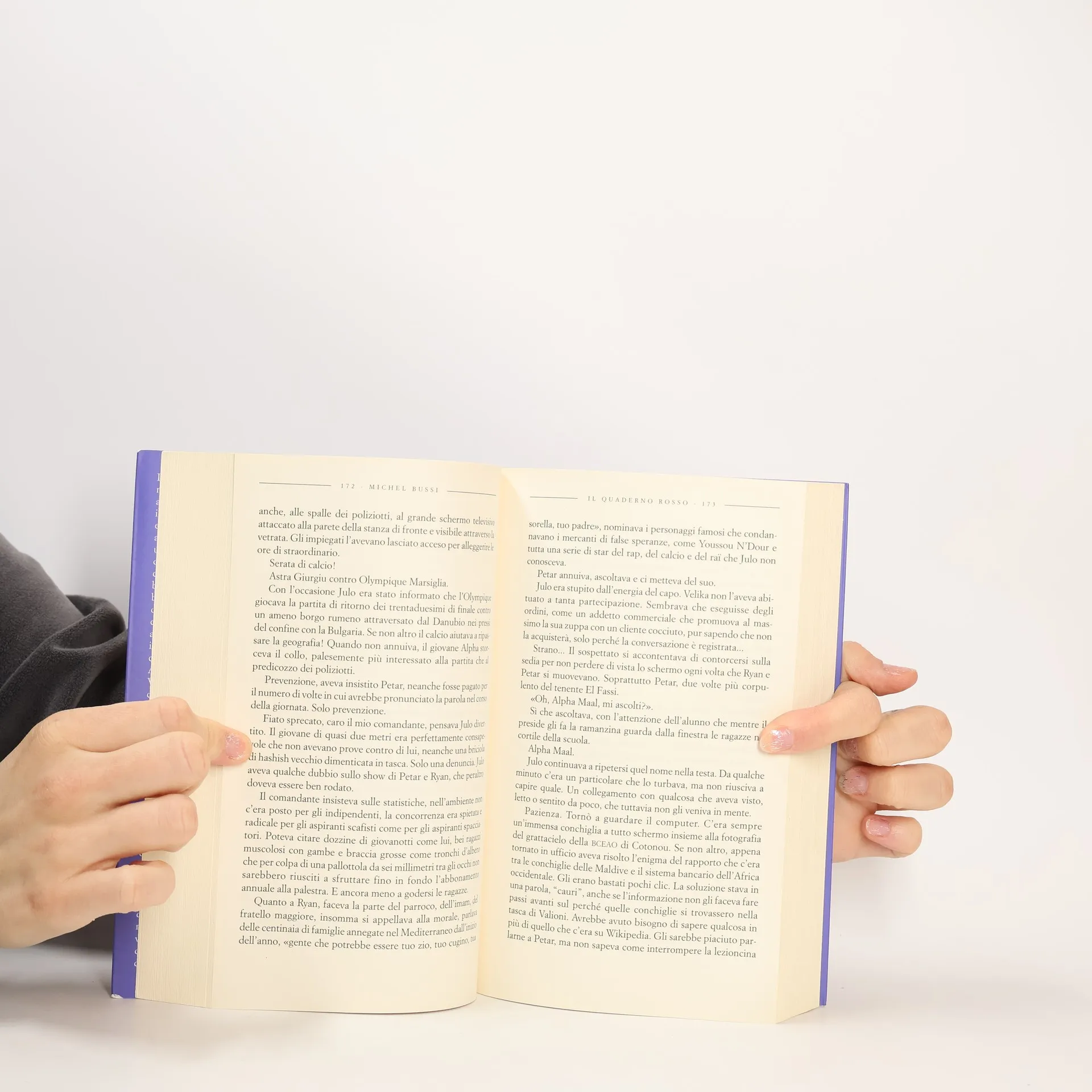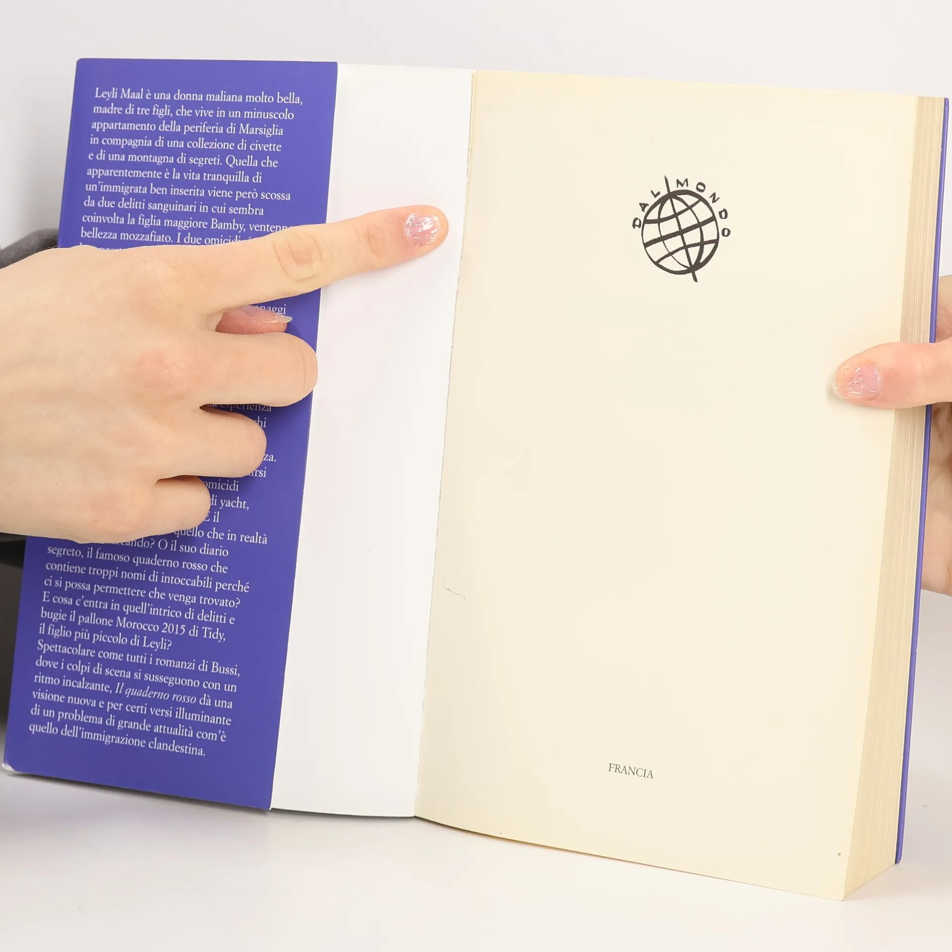Leyli Maal è una donna maliana molto bella, madre di tre figli, che vive in un minuscolo appartamento della periferia di Marsiglia in compagnia di una collezione di civette e di una montagna di segreti. Quella che apparentemente è la vita tranquilla di un’immigrata ben inserita viene però scossa da due delitti sanguinari in cui sembra coinvolta la figlia maggiore Bamby, ventenne bellezza mozzafiato. I due omicidi si rivelano ben presto essere il coperchio del vaso di Pandora del racket dell’immigrazione clandestina, scoperchiato il quale vengono alla luce scheletri nell’armadio di personaggi insospettabili e agghiaccianti organizzazioni che lucrano sulla pelle dei più derelitti. A cercare di dipanare la matassa è Petar Velika, un commissario fin troppo navigato, coadiuvato dal tenente Flores, giovane poliziotto tecnologico, ma senza esperienza sul campo, che si è innamorato degli occhi dell’assassina appena li ha visti sulle registrazioni delle telecamere di sorveglianza. In quattro giorni e tre notti è un susseguirsi pirotecnico di cacce all’uomo, omicidi sventati o eseguiti, dirottamenti di yacht, traversate del Sahara, naufragi. È il misterioso tesoro di Leyli quello che in realtà tutti stanno cercando? O il suo diario segreto, il famoso quaderno rosso che contiene troppi nomi di intoccabili perché ci si possa permettere che venga trovato? E cosa c’entra in quell’intrico di delitti e bugie il pallone Morocco 2015 di Tidy, il figlio più piccolo di Leyli? Spettacolare come tutti i romanzi di Bussi, dove i colpi di scena si susseguono con un ritmo incalzante, Il quaderno rosso dà una visione nuova e per certi versi illuminante di un problema di grande attualità com’è quello dell’immigrazione clandestina.