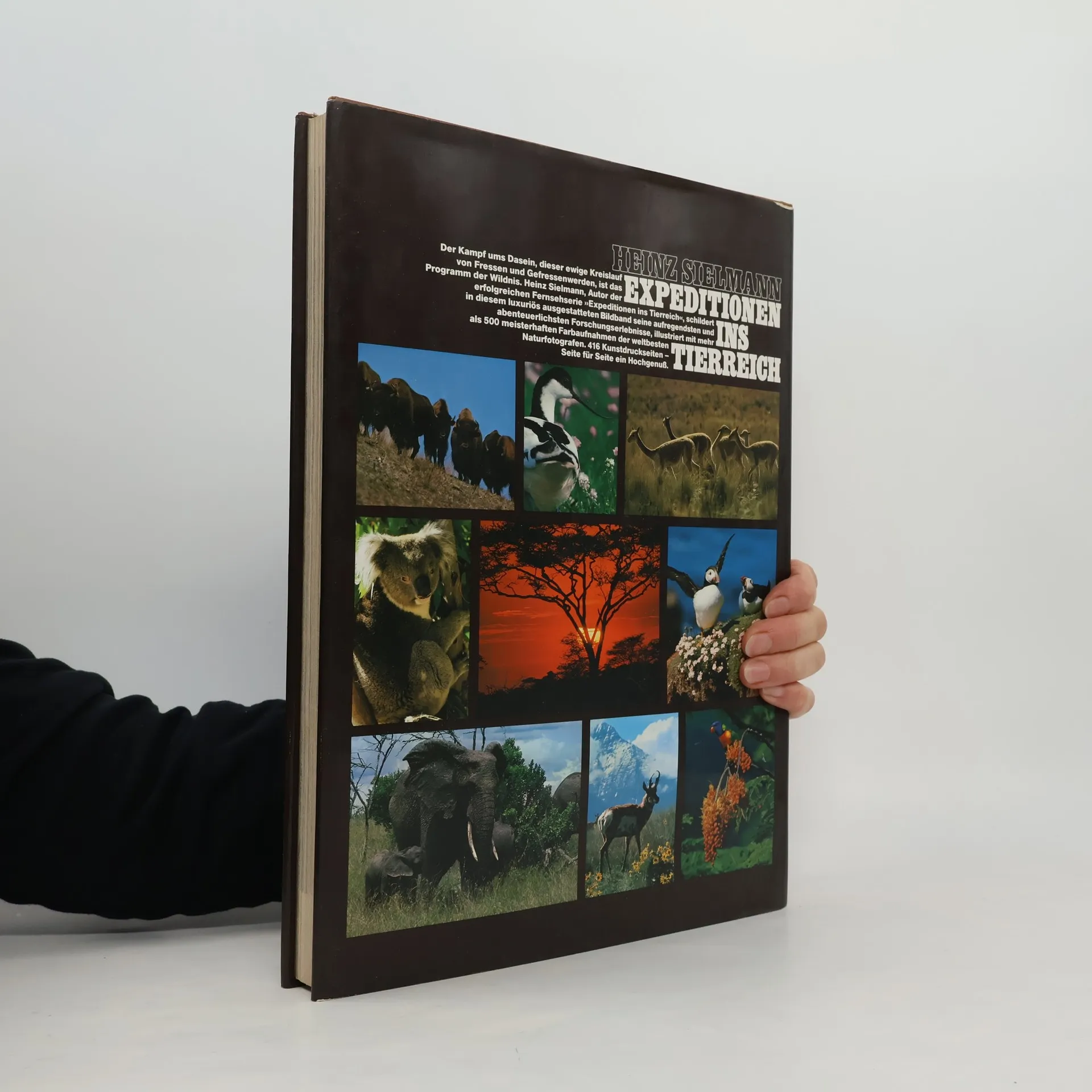 Von der eisigen Bergwildnis Alaskas bis in den feuchtheißen Tropendschungel Borneos, von der gelben Hölle Nordafrikas bis in die endlosen Weiten der skandinavischen Tundra - märchenhafter und prachtvoller ist die Welt der Tiere noch nie gezeigt worden als in diesem Buch. Der Kampf ums Dasein, dieser ewige Kreislauf von Fressen und Gefressenwerden, ist das Programm der Wildnis. Heinz Sielmann, Autor der erfolgreichen Fernsehserie "Expeditionen ins Tierreich", schildert in diesem luxuriös ausgestatteten Bildband seine aufregendsten und abenteurlichsten Forschungserlebnisse, illustriert mit mehr als 500 meisterhaften Farbaufnahmen der weltbesten Naturfotografen. 416 Kunstdruckseiten - Seite für Seite ein Hochgenuß.