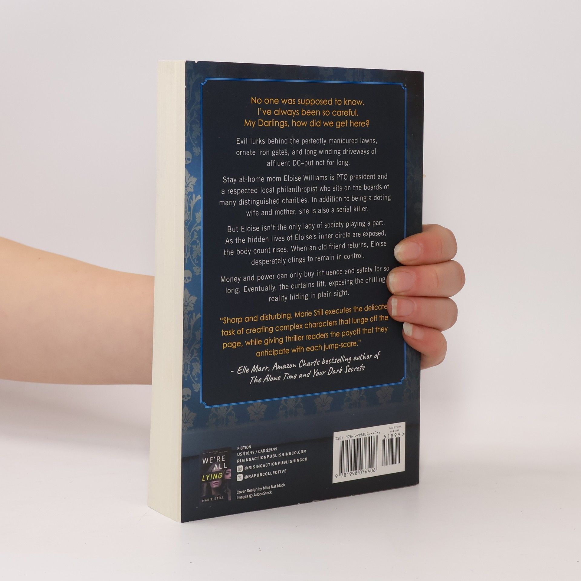 ABC’s DESPERATE HOUSEWIVES meets HBO’s DEXTER, MY DARLINGS, a chilling suburban noir set in the deceptively serene Washington D.C. suburbs, where a respected philanthropist and PTO president's secret life as a serial killer enthralls readers seeking a deep, psychological thrill. No one was supposed to know. I've always been so careful. My Darlings, how did we get here? Evil lurks behind the perfectly manicured lawns, ornate iron gates, and long winding driveways of affluent DC–but not for long. Stay-at-home mom Eloise Williams is PTO president and a respected local philanthropist who sits on the boards of many distinguished charities. In addition to being a doting wife and mother, she is also a serial killer. But Eloise isn’t the only lady in society playing a part. As the hidden lives of Eloise's inner circle are exposed, the body count rises. When stalkers becomes prey, Eloise desperately clings to control. Money and power can only buy influence and safety for so long. Eventually, the curtains lift, exposing the chilling reality hiding in plain sight. This dark thriller has numerous content warnings: child death, suicide, hazing, bullying, murder, infidelity, brutal slayings, domestic abuse/violence, child abuse, torture