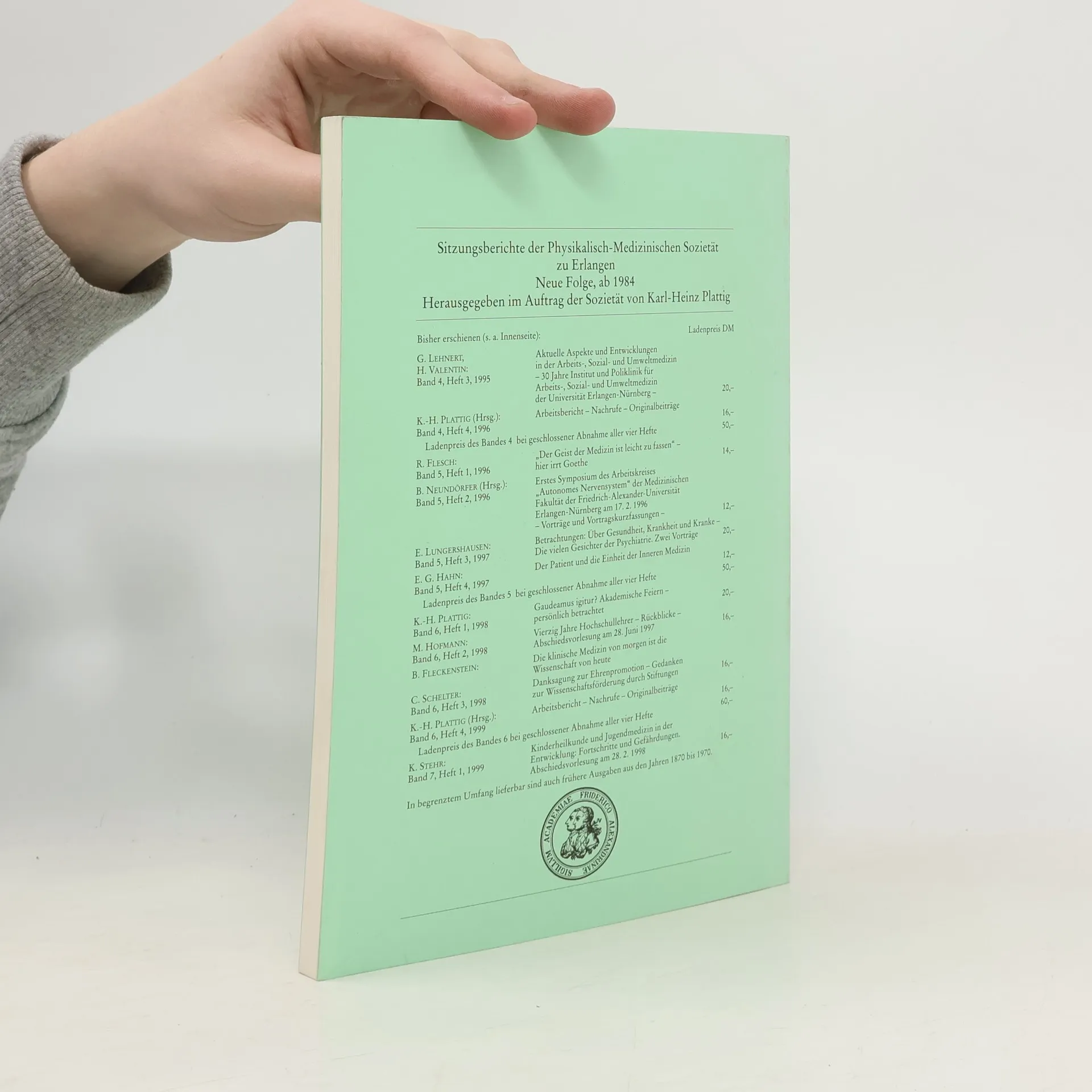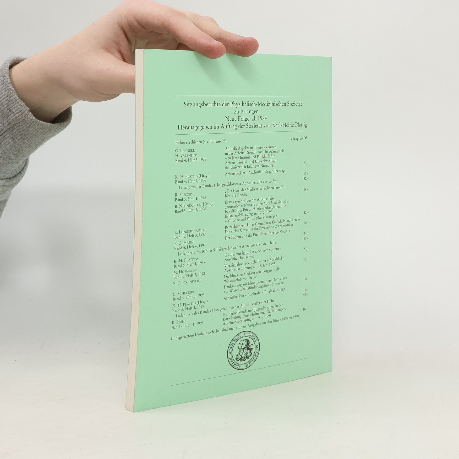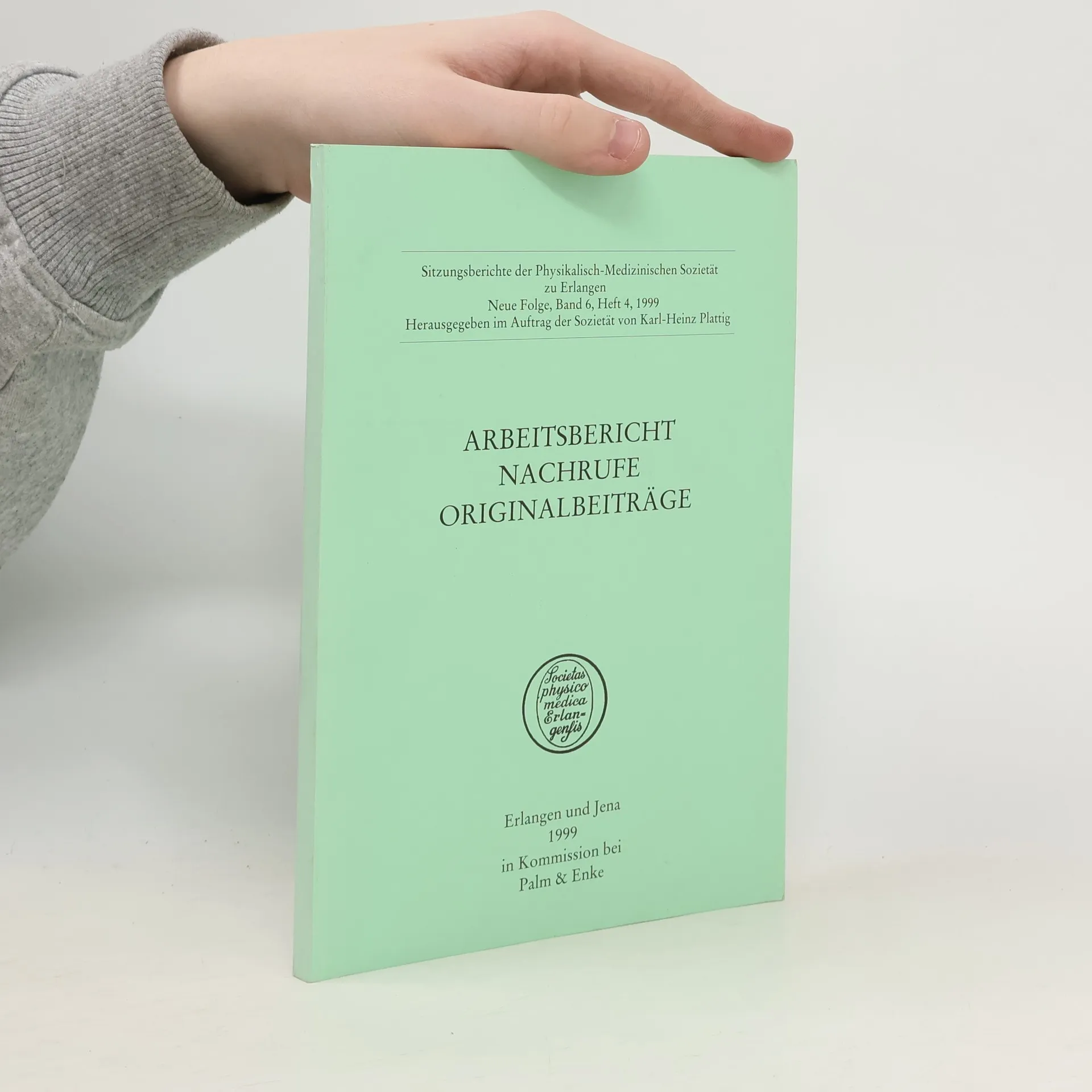 Sitzungsberichte der Physikalisch-Medizinischen Sozietät zu Erlangen - Neue Folge, Band 6, Heft 4: Arbeitsbericht, Nachrufe, Originalbeiträge, Karl-Heinz Plattig, Physikalisch-Medizinische Sozietät zu Erlangen