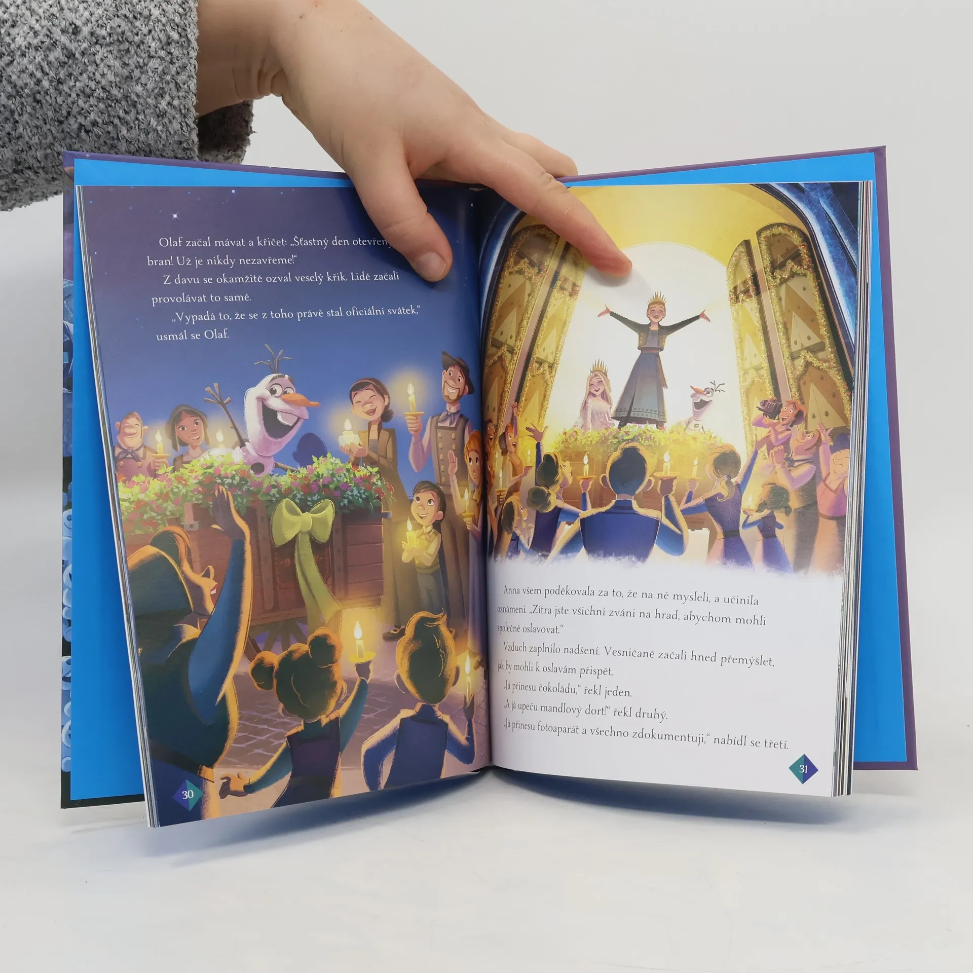 V prvních dvou příbězích si přečtete o tom, jak Anna s Elsou slavily s celým královstvím významný den – výročí, kdy se znovu otevřely brány arendellského hradu. Další příběh je o tom, jak Anna pózovala dvornímu malíři pro královský portrét. Jistě tušíte, že to nebylo úplně snadné. A nakonec budete držet palce Kristoffovi, který sbírá odvahu, aby požádal Annu o ruku. Jak to asi dopadne?