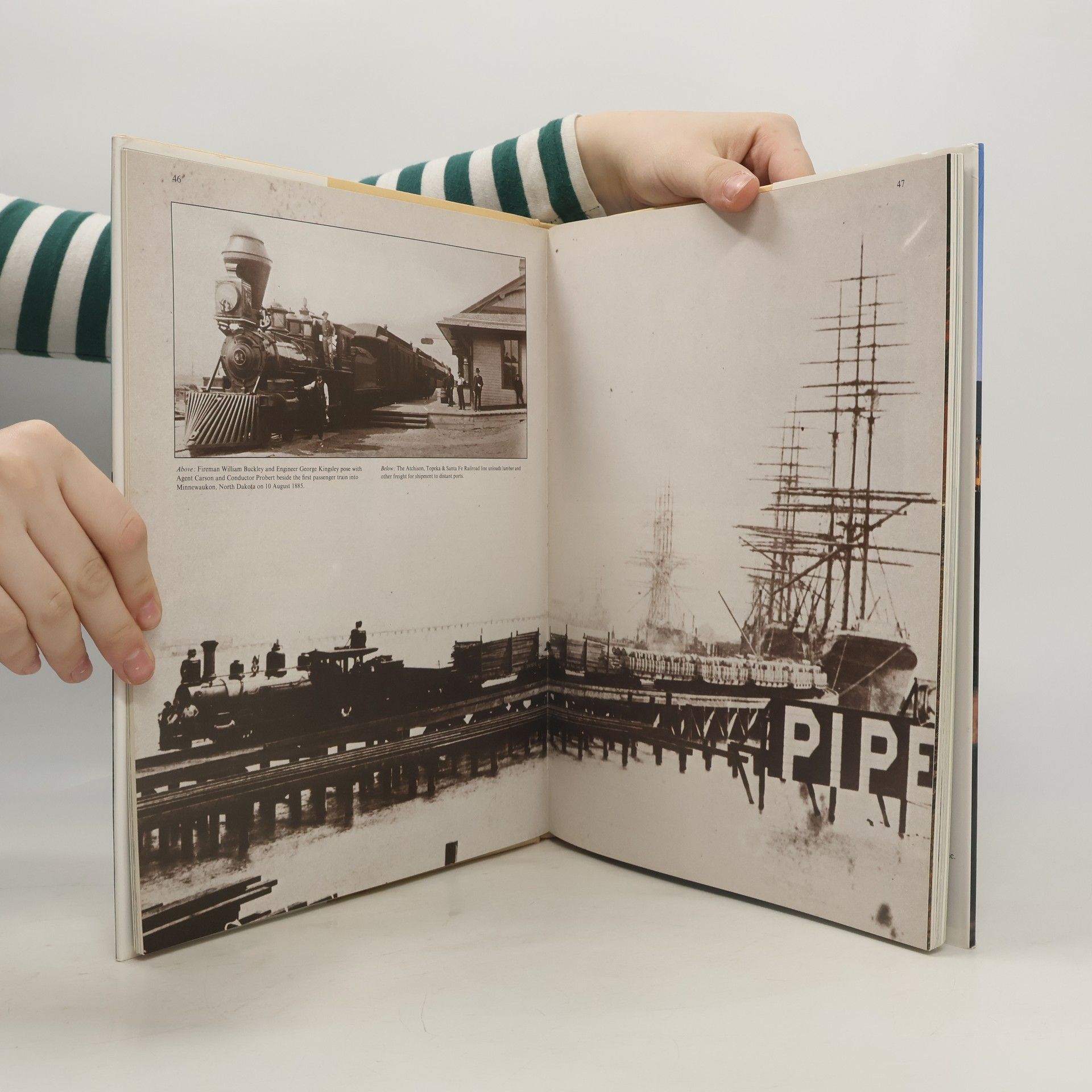Text and illustrations describe the history of railroads in the American West.