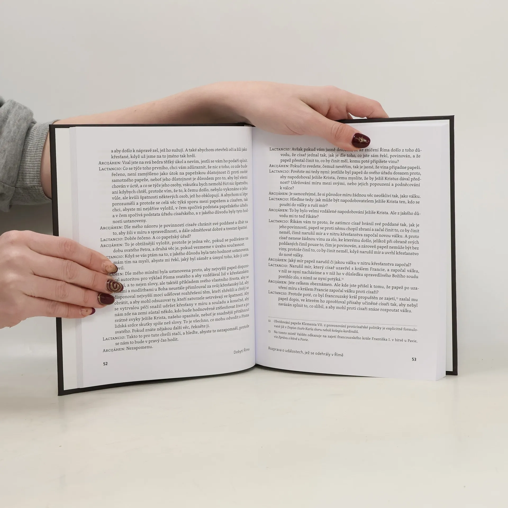 Vyplenění Říma vojsky ve službách císaře Karla V., k němuž došlo v květnu roku 1527 v rámci takzvaných italských válek, představuje jednu z nejbolestnějších ran, které Věčné město během své dlouhé historie utrpělo. Jakým způsobem však tuto událost, která na většině míst tehdejší katolické Evropy vyvolala zděšení a odsudky, vnímali lidé, kteří stáli na císařské straně? Považovali ji za spravedlivý trest, který Bůh seslal na papeže a další vysoké představitele římskokatolické církve, nebo byli tím, co španělští, italští a němečtí vojáci ve službách císaře Karla V. spáchali, rovněž zděšeni? K první skupině patřil španělský humanista a císařský sekretář Alfonso de Valdés (1490–1532), muž, který ve svých spisech dokázal pružně reagovat na dynamický vývoj událostí dvacátých let 16. století a jehož dílo nabízí unikátní vhled do myšlení jednoho ze zastánců císařského univerzalismu. Ústřední součást předkládané knihy představuje Valdésův dialog nazvaný Rozprava o událostech, jež se odehrály v Římě, na jehož stránkách se jeho autor pokusil vysvětlit destrukci Říma z pohledu zastánce císařské politiky. Toto literární dílo doplňuje překlad několika Valdésových latinsky psaných dopisů, jejichž prostřednictvím je možné nahlédnout, jakým způsobem humanisté počátku dvacátých let 16. století interpretovali nejen rozličné problémy, které dle jejich mínění tehdejší církev postihovaly, ale i v té době vznikající reformační hnutí.