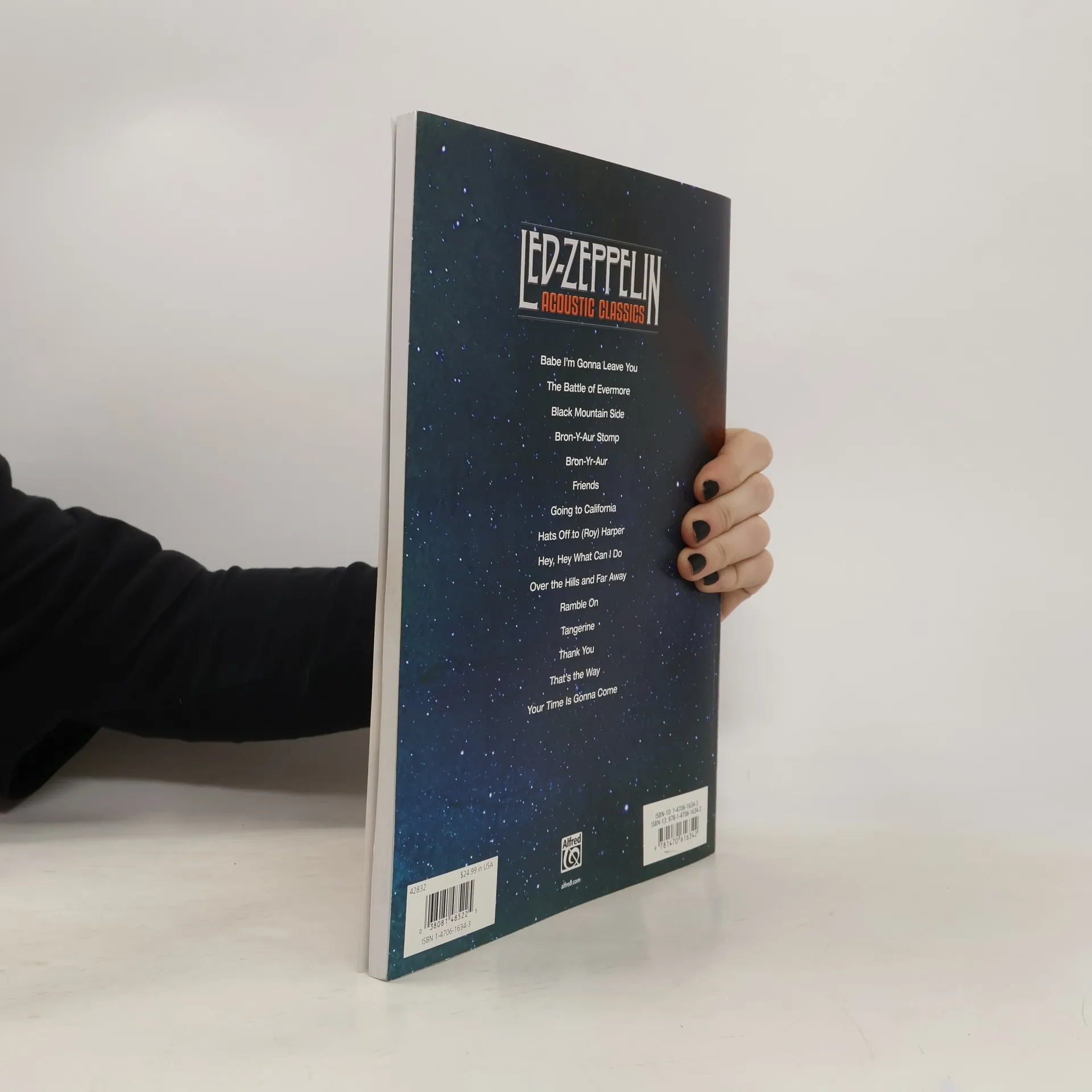 While Led Zeppelin have always been renowned for their heavy blues rock and beyond, Jimmy Page and Robert Plant's vision was always a fusion between rock and traditional acoustic folk and Celtic music. Drawing from a spectacularly wide range of influences, Jimmy Page brews a distinctive and unmistakable blend when unplugged. Featuring all new arrangements with correct alternate tunings, based on never-before-available isolated guitar tacks, this book collects all the best acoustic songs from Led Zeppelin's storied catalog, in authentic guitar TAB transcriptions. A foreword by Jimmy Brown of Guitar World magazine provides a necessary insight into the material, and there's even a tuning key in the back that will illuminate Page's frequent use of altered tunings. Titles: Babe I'm Gonna Leave You * The Battle of Evermore * Black Mountain Side * Bron-Y-Aur Stomp * Bron-Yr-Aur * Friends * Going to California * Hats Off to (Roy) Harper * Hey, Hey What Can I Do * Over the Hills and Far Away * Ramble On * Tangerine * Thank You * That's the Way * Your Time Is Gonna Come.