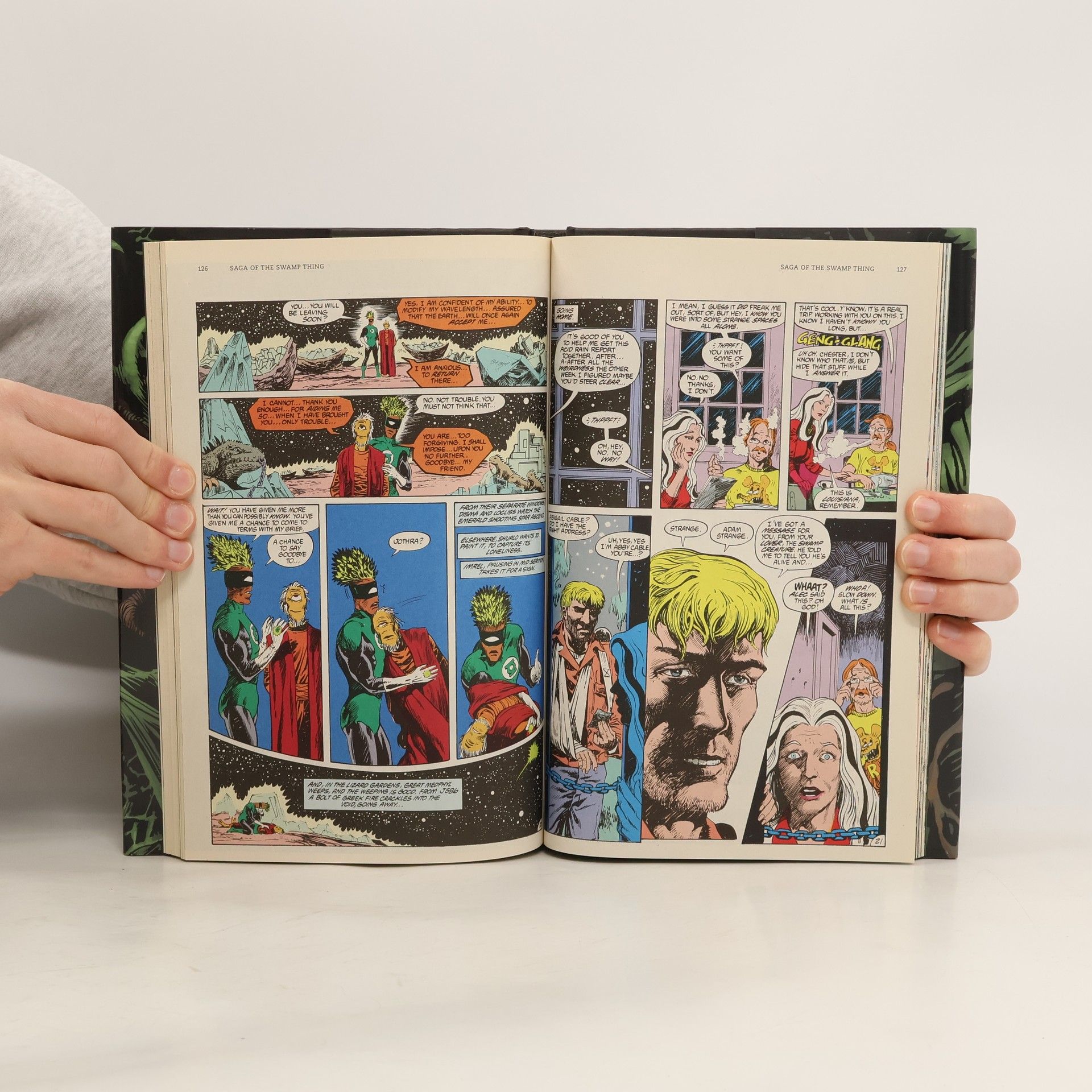 Written by ALAN MOORE - Art by RICK VEITCH, STEVEN BISSETTE, and others - Cover by JOHN TOTLEBEN This hardcover collection of issues #57-64 of SWAMP THING begins across the galaxy, where the Swamp Thing's consciousness has been hurled. Trying to find his way back to Earth, Swamp Thing stops over on Thanagar, home of Hawkman; Rann, home of Adam Strange; and encounters the Green Lantern of a world of sentient plants. On sale OCTOBER 19 - 208 pg, FC, $24.99 US - MATURE READERS