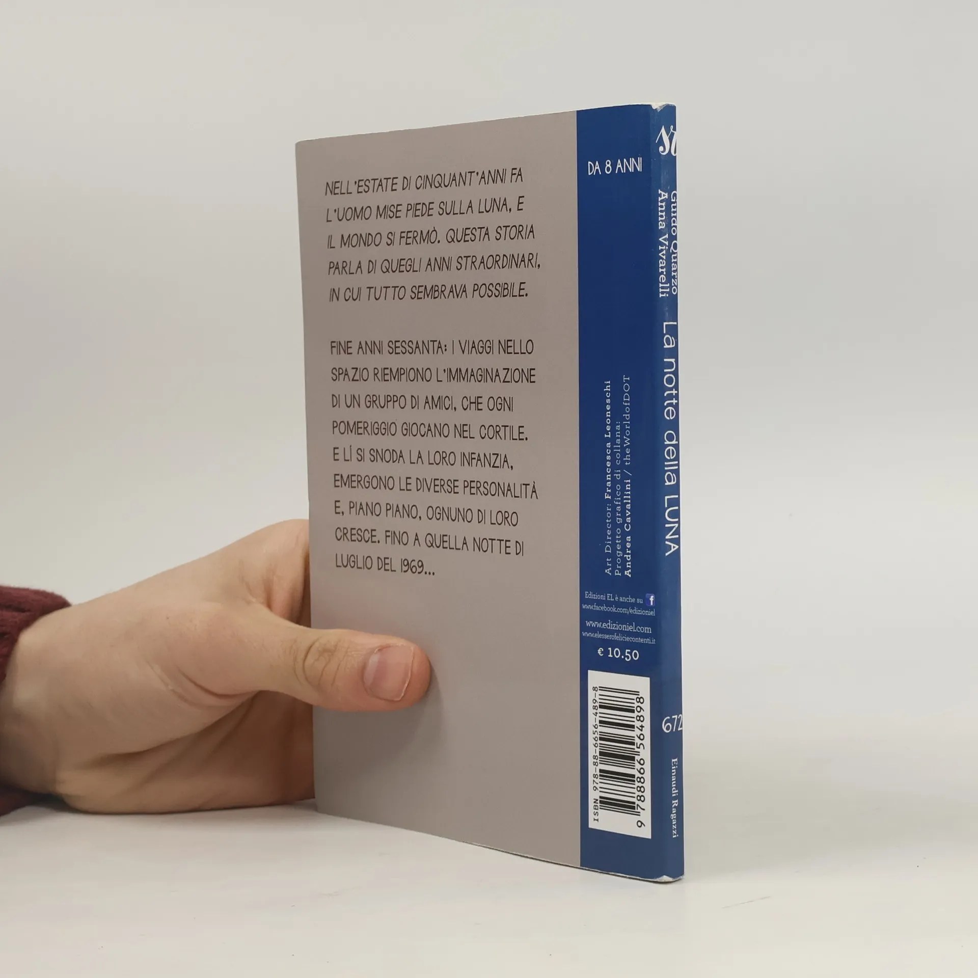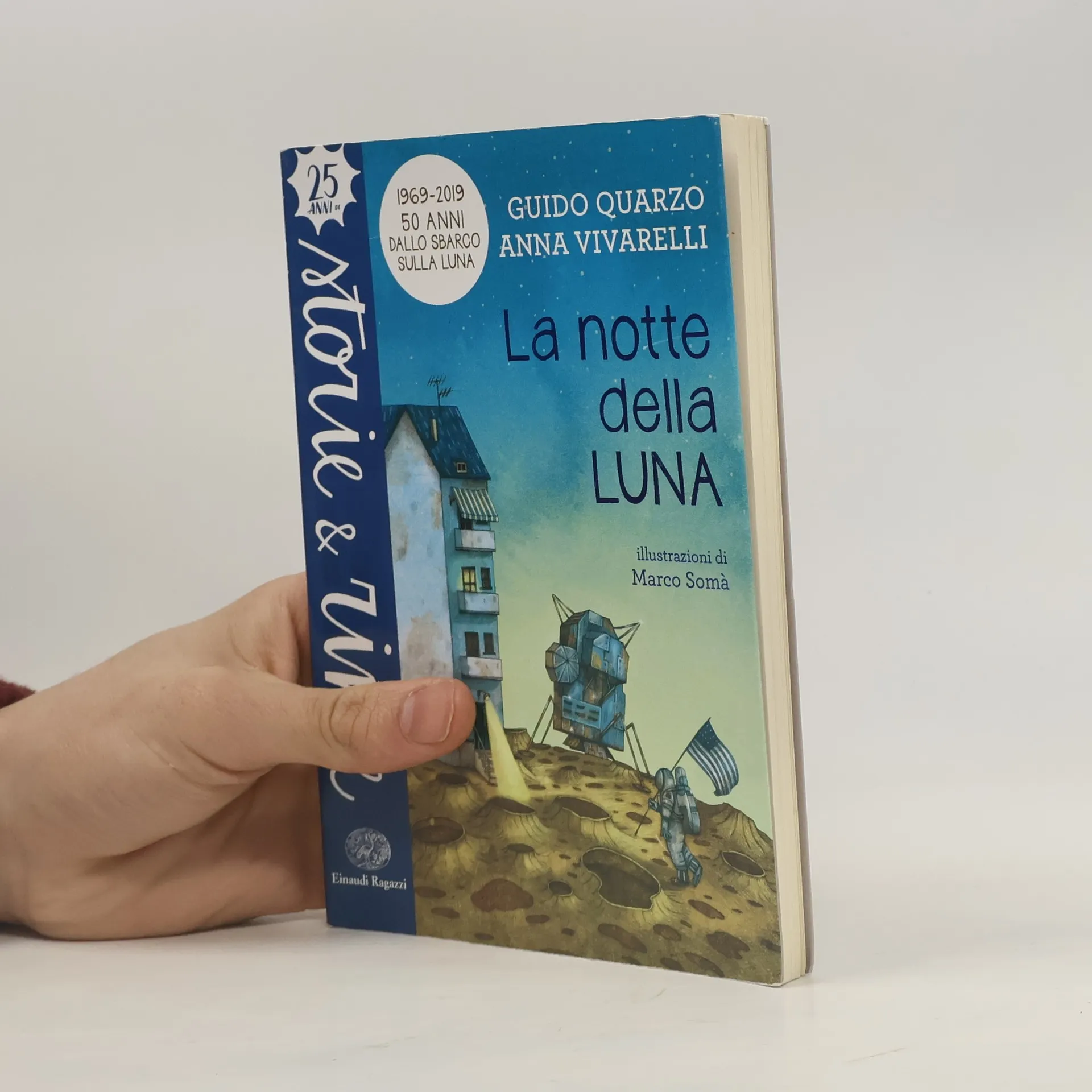 Nell'estate di cinquant'anni fa l'uomo mise piede sulla luna, e il mondo si fermò. Questa storia parla di quegli anni straordinari, in cui tutto sembrava possibile. Fine anni I viaggi nello spazio riempiono l'immaginazione di un gruppo di amici, che ogni pomeriggio giocano nel cortile. E lì si snoda la loro infanzia, emergono le diverse personalità e, piano piano, ognuno di loro cresce. Fino a quella notte di luglio del 1969... Età di da 8 anni.