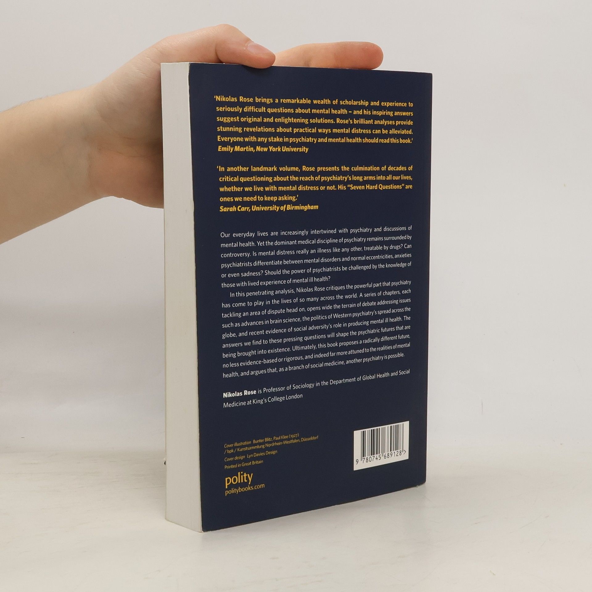 Our everyday lives are increasingly intertwined with psychiatry and discussions of mental health. Yet the dominant medical discipline of psychiatry remains surrounded by controversy. Is mental distress really an illness like any other, treatable by drugs? Can psychiatrists differentiate between mental disorders normal eccentricities, anxieties or even sadness? Should the power of psychiatrists be challenged by the knowledge of those with lived experience of mental ill health? In this penetrating analysis, Nikolas Rose critiques the powerful part that psychiatry has come to play in the lives of so many across the world. A series of chapters, each tackling an area of dispute head on, opens wide the terrain of debate addressing issues such as advances in brain science, the politics of Western psychiatry's spread across the globe, and recent evidence of social adversity's role in producing mental ill health. The answers we find to these pressing questions will shape the psychiatric futures that are being brought into existence. Ultimately, this book proposes a radically different future, no less evidence-based or rigorous, and indeed far more attuned to the realities of mental health, and argues that, as a branch of social medicine, another psychiatry is possible.