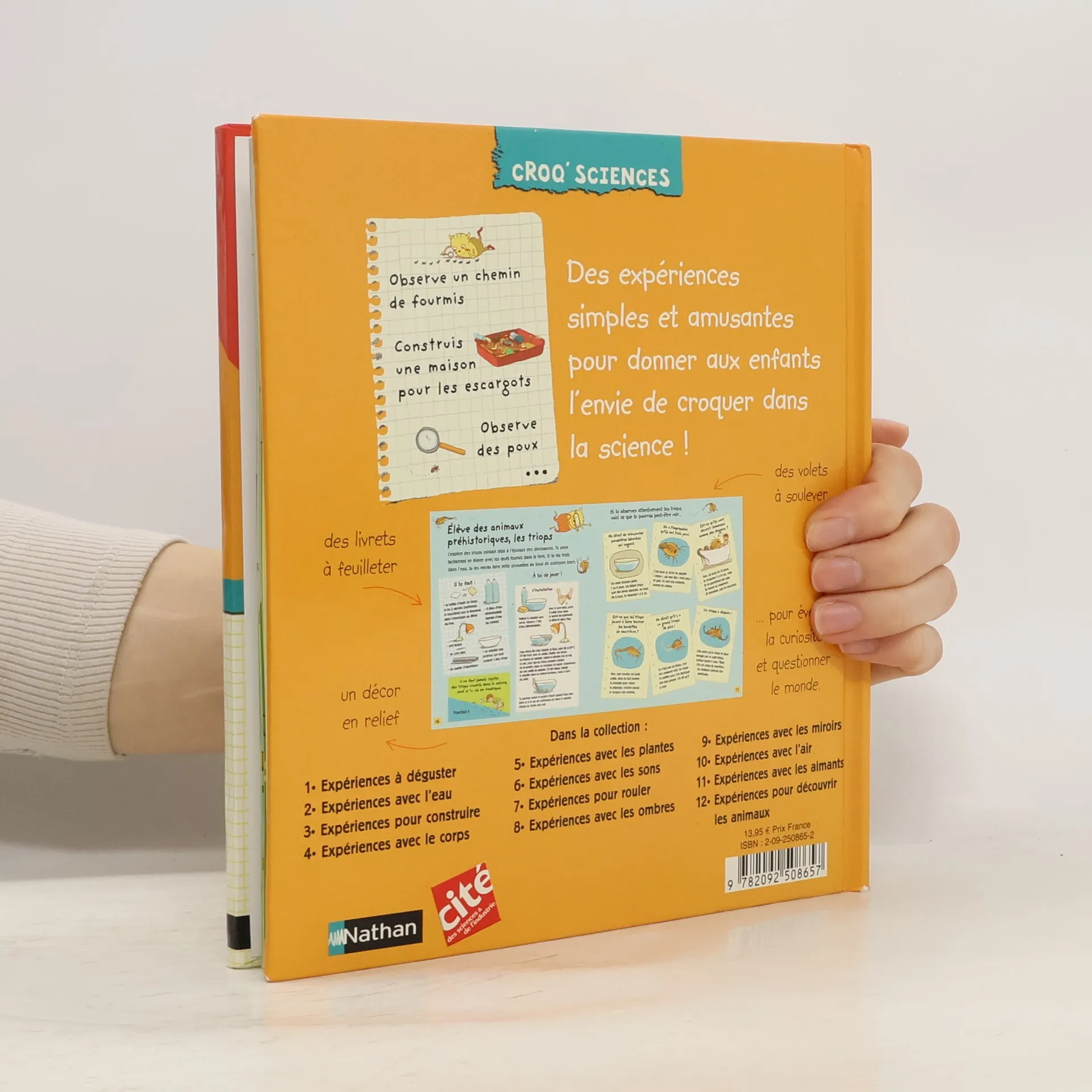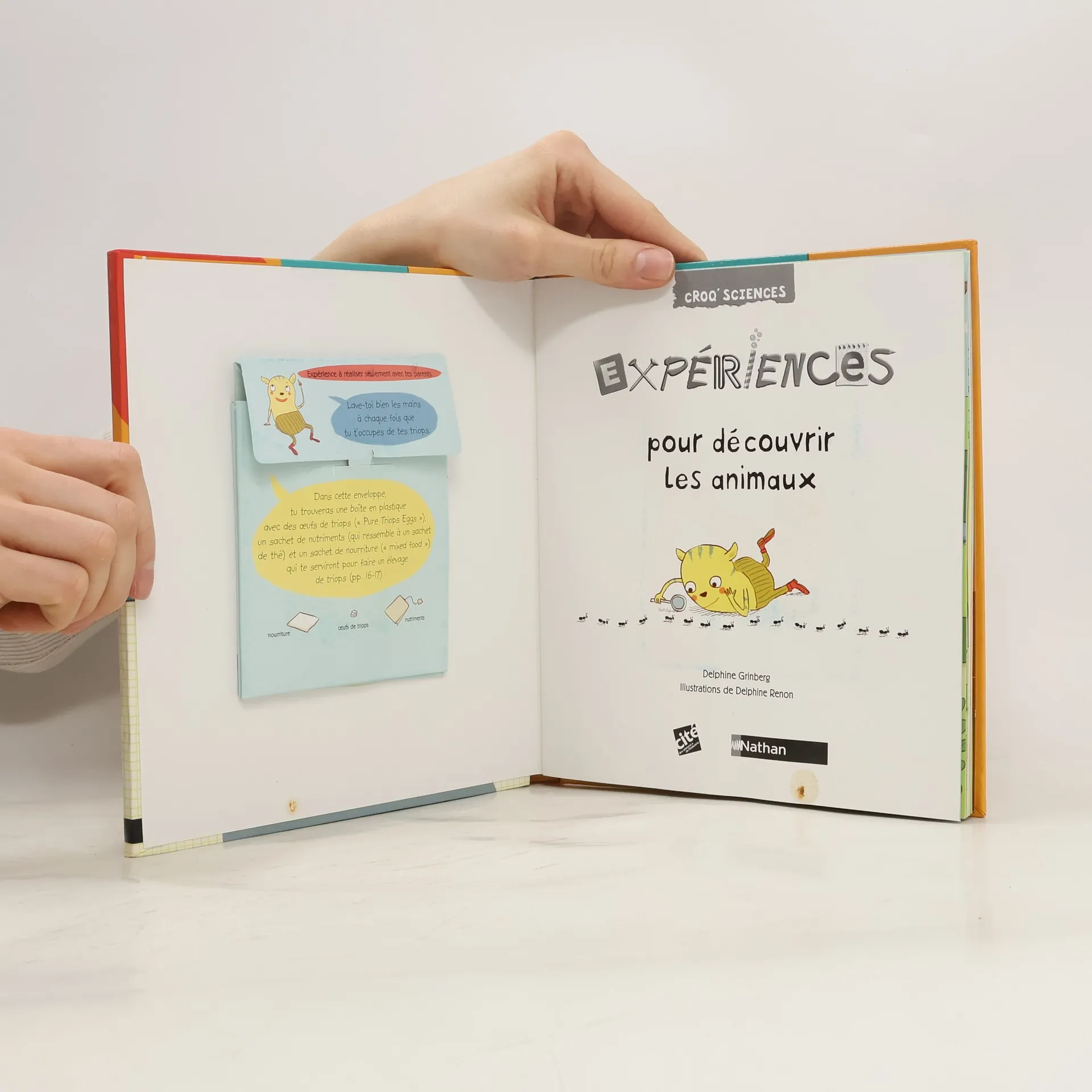 Des expériences simples et amusantes pour donner envie aux enfants de croquer dans la science !Une co-édition Nathan Jeunesse et la Cité des Sciences et de l'IndustrieUn petit quizz comme introduction au thèmePlus de 7 expériences (dont une avec des fiches à compléter)Fais comme si tu étais un animalLes escargots sont-ils vivants ?Installe une maison pour les escargotsExplore un chemin de fourmisAssemble une collection de trésorsElève des animaux préhistoriques : les Triops Qui pourrais-je apprivoiser ?Chien, que dis-tu ?Une expérience sous forme d'un défi aux parents : " attrape une mouche vivante "Explications documentaires (hommes et animaux)Histoires vraiesUn décor en relief à observer4 ans et +
