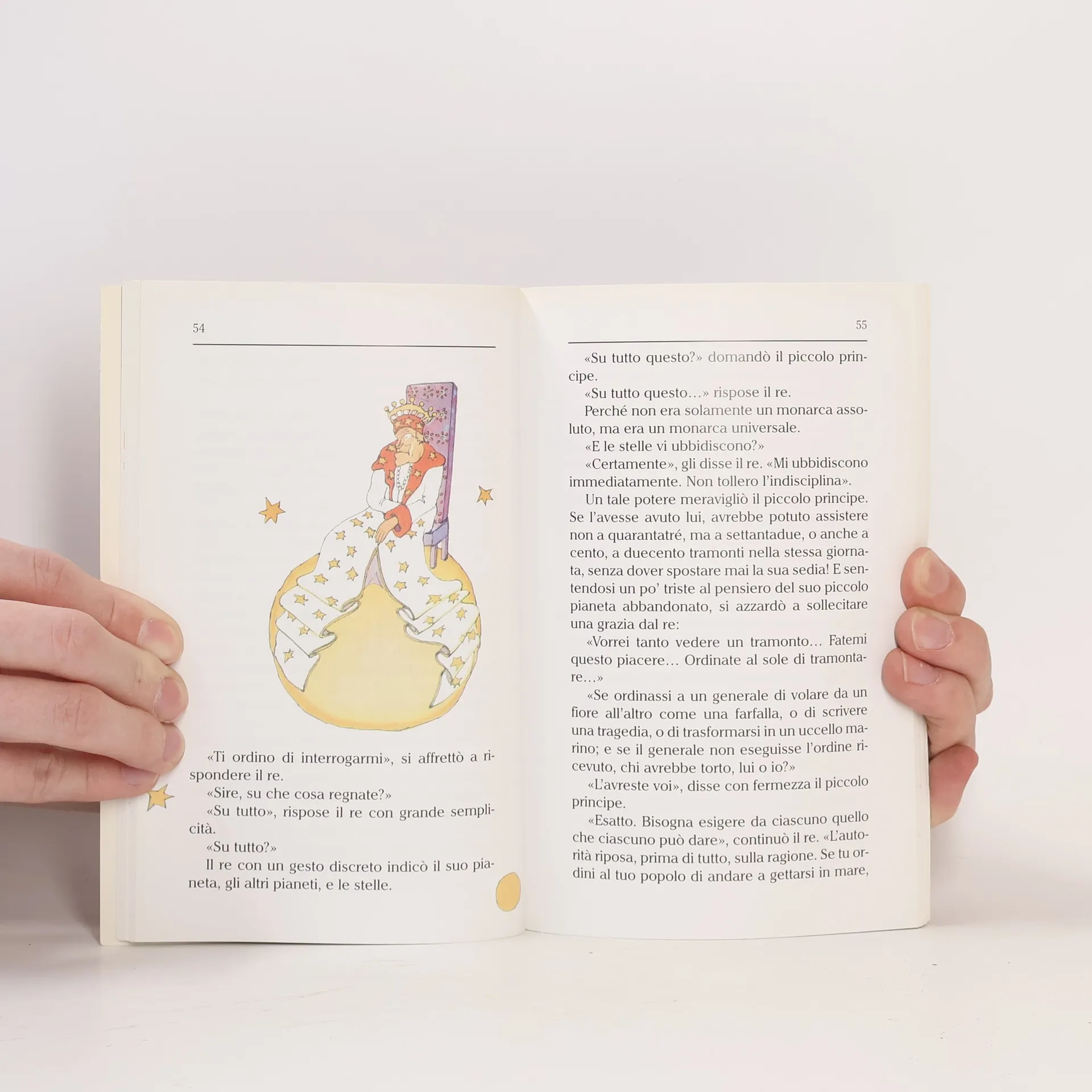 Il Piccolo Principe è un bambino dai capelli d'oro che in vita sua non aveva mai rinunciato ad una domanda dopo averla formulata, un bambino caduto sulla Terra per il desiderio di vedere un pianeta più grande dopo aver visitato tanti altri mondi, piccoli come il suo.