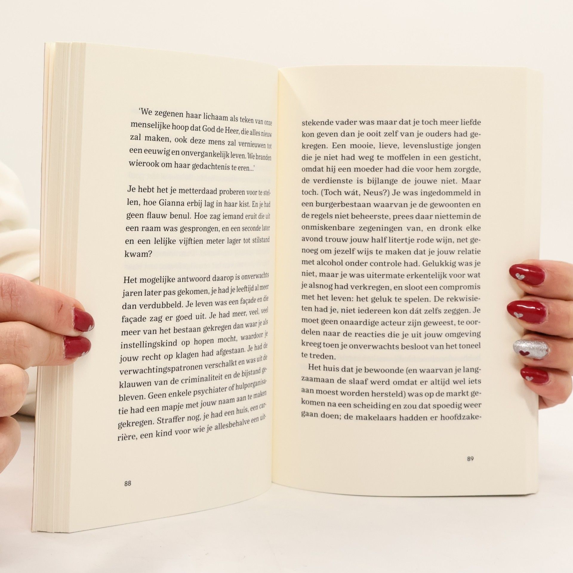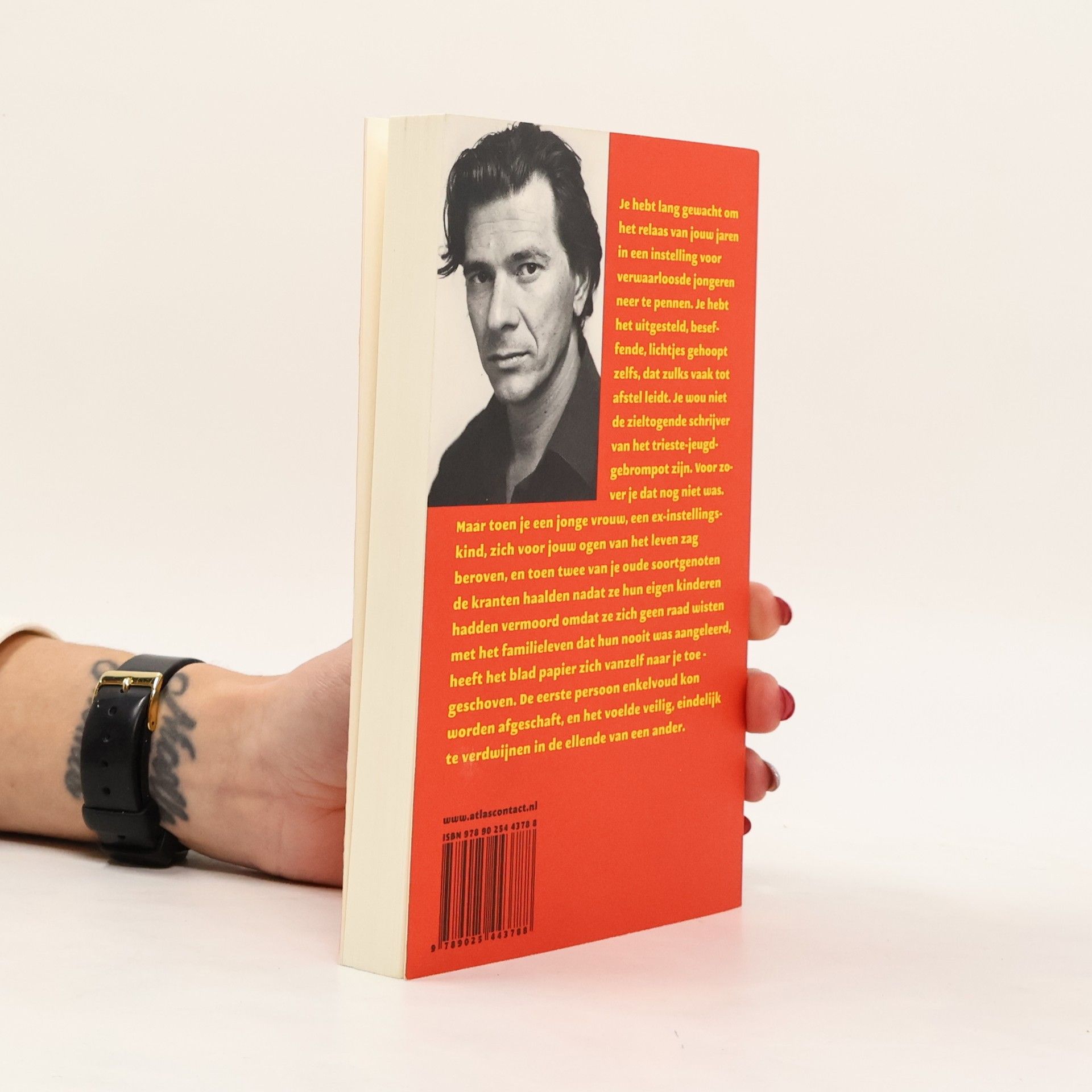 ' Je hebt lang gewacht om het relaas van jouw jaren in een instelling voor verwaarloosde jongeren neer te pennen. Je hebt het uitgesteld, beseffende, lichtjes gehoopt zelfs, dat zulks vaak tot afstel leidt. Je wou niet de zieltogende schrijver van het trieste-jeugd-gebrompot zijn. Voor zover je dat nog niet was. Maar toen je een jonge vrouw, een ex-instellingskind, zich voor jouw ogen van het leven zag beroven, en toen twee van je oude soortgenoten de kranten haalden omdat ze zich geen raad wisten met het familieleven dat hun nooit was aangeleerd, heeft het blad papier zich vanzelf naar je toegeschoven. De eerste persoon enkelvoud kon worden afgeschaft, en het voelde veilig, eindelijk te verdwijnen in de ellende van een ander.'