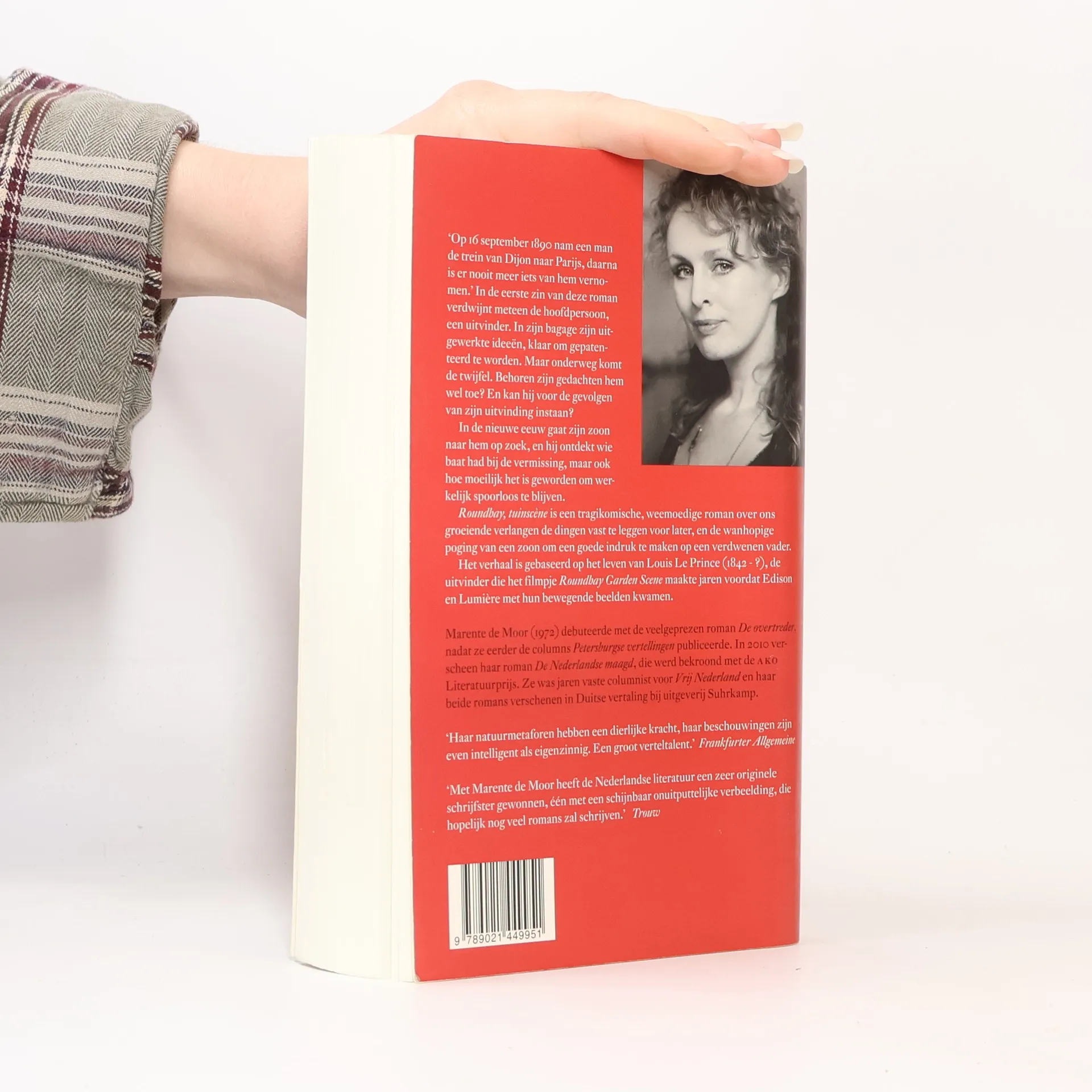 ‘Op 16 september 1890 nam een man de trein van Dijon naar Parijs, daarna is er nooit meer iets van hem vernomen.’ Zo, met de verdwijning van de hoofdpersoon, begint de nieuwe roman van Marente de Moor. Het boek is gebaseerd op het levensverhaal van Louis Le Prince (1842-?), de uitvinder die zijn filmpje ‘Roundhay Garden Scène’ maakte lang voordat Edison en Lumière met hun bewegende beelden kwamen. In zijn bagage pakken papier met grote ideeën, klaar om gepatenteerd te worden. Maar onderweg in de trein sloeg de twijfel toe. Behoorden zijn gedachten hem wel toe? En kon hij voor de gevolgen van zijn uitvinding instaan? Als zijn zoon jaren later naar hem op zoek gaat, ontdekt hij wie baat had bij de vermissing.